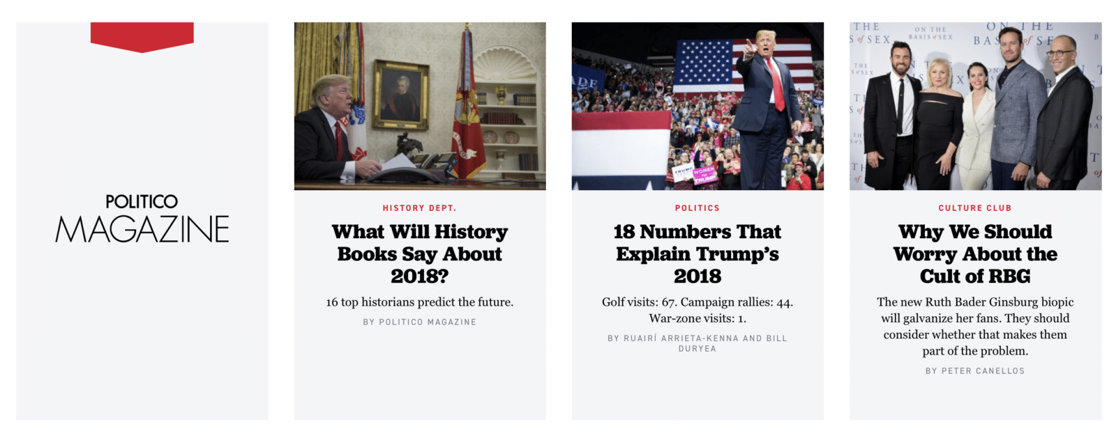 เนื้อหาที่ Politico หยิบยกมานำเสนอ ไม่ใช่แค่ว่าใครทำอะไรที่ไหน เป็นข่าวเพื่อความสะใจอย่างเดียว แต่จะมีการยกกรณีศึกษามาพูดถึง ทำให้การอ่านข่าวการเมืองจาก Politico ได้ความรู้และสอนให้เราคิดแบบเป็นขั้นเป็นตอน วิเคราะห์และใช้เหตุผลมากขึ้น ซึ่งแน่นอนว่าเป็นสิ่งสำคัญในยุคที่มีแต่ข่าวปลอมและข่าวลวงเต็มไปหมด