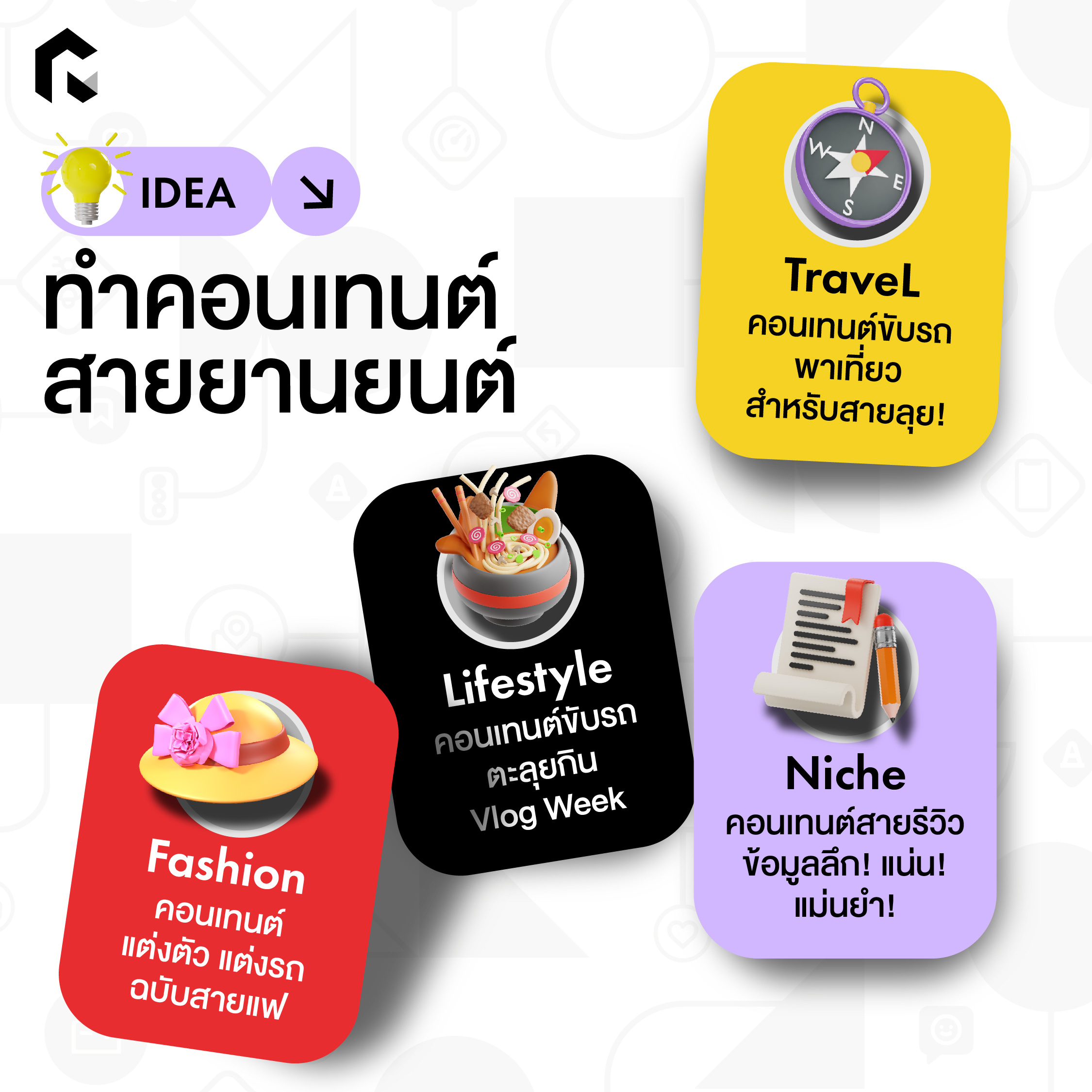 - สาย Travel: คอนเทนต์ขับรถพาเที่ยว สำหรับสายลุย!
