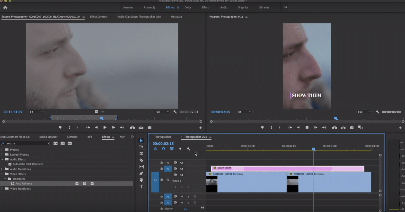 แต่ในที่สุดปัญหานี้กำลังจะหมดไป เมื่อ Adobe Premiere Pro โปรแกรมตัดวิดีโอยอดนิยมกำลังจะมีฟีเจอร์ที่ชื่อว่า Auto Reframe ซึ่งเราสามารถกำหนดอัตราส่วนที่ต้องการ และโปรแกรมจะเลือกไปโฟกัสเฉพาะจุดที่สำคัญให้แบบอัตโนมัติ โดยเป็นการประมวลผลจาก Machine Learning