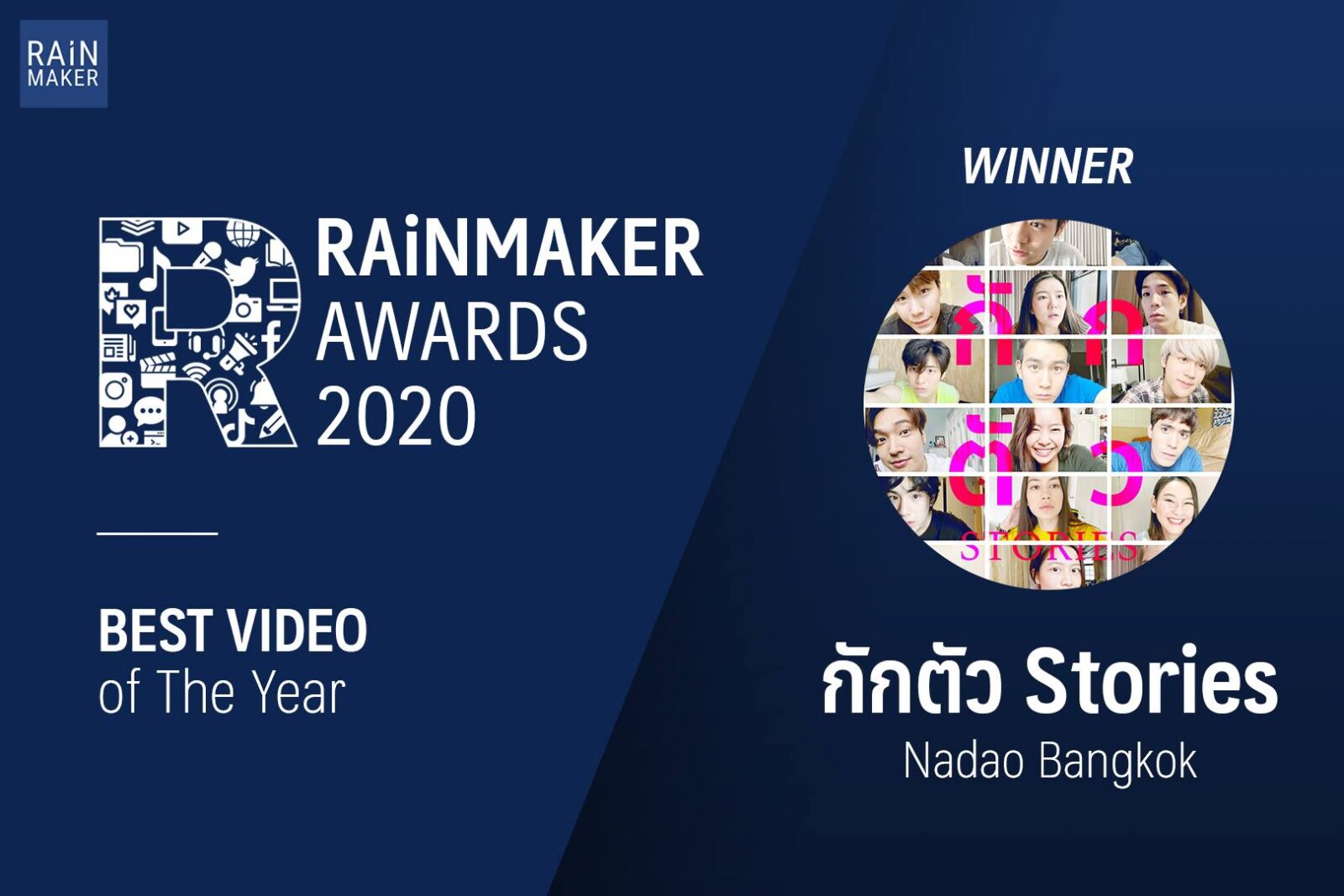 RAiNMaker จึงขอมอบรางวัล Best Videos of the Year ให้กับกักตัว Stories โดย Nadao Bangkok