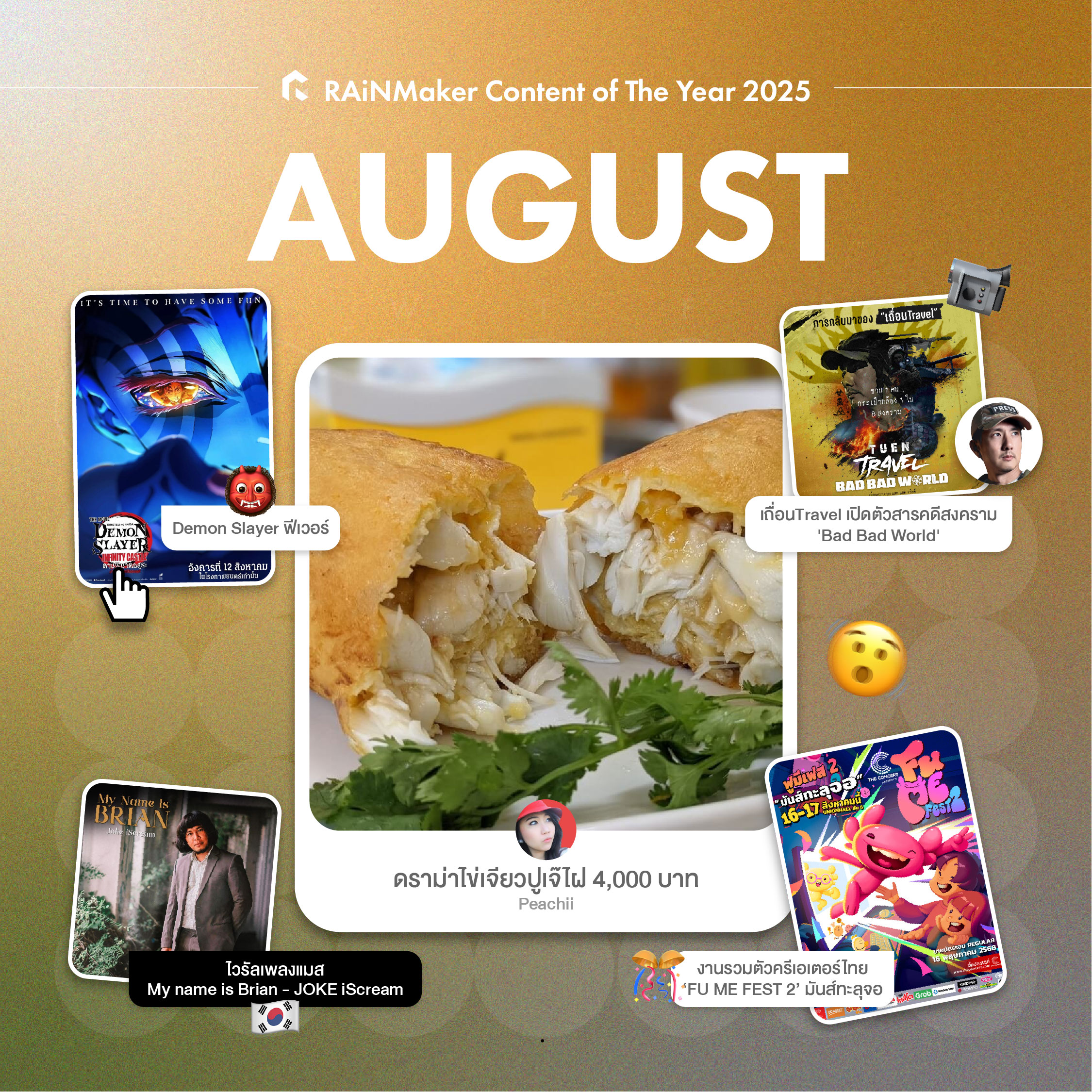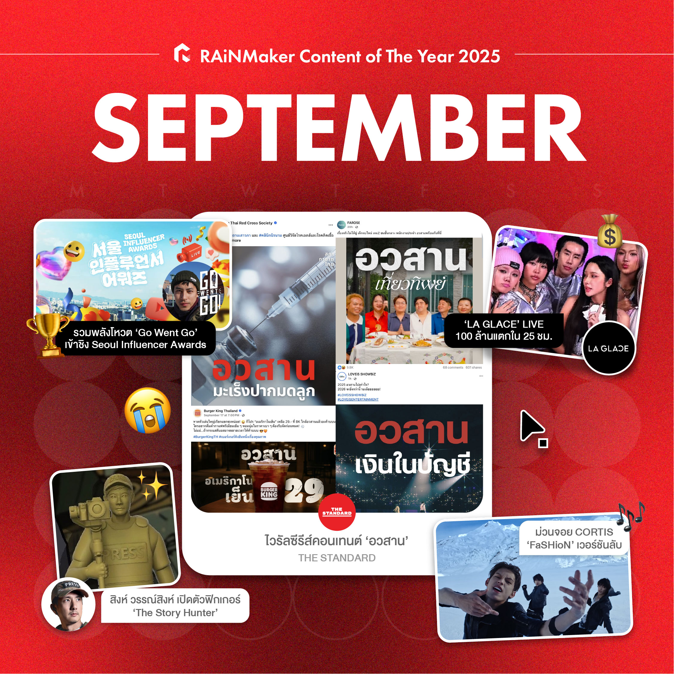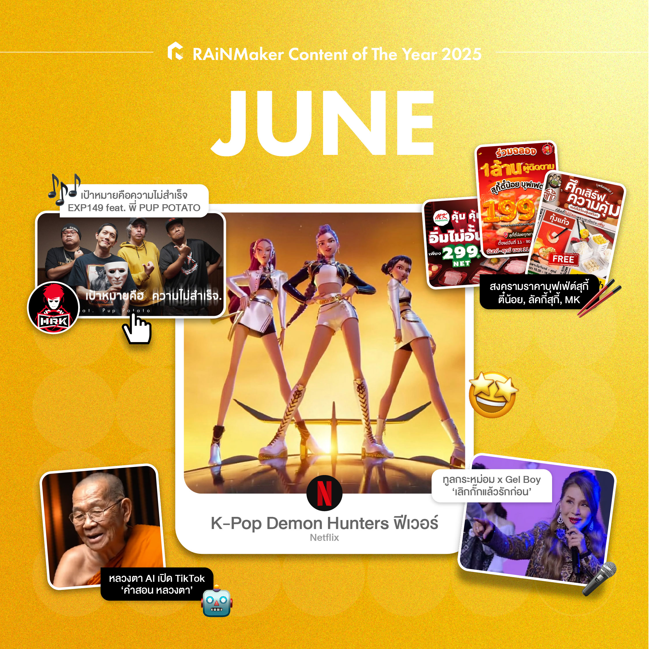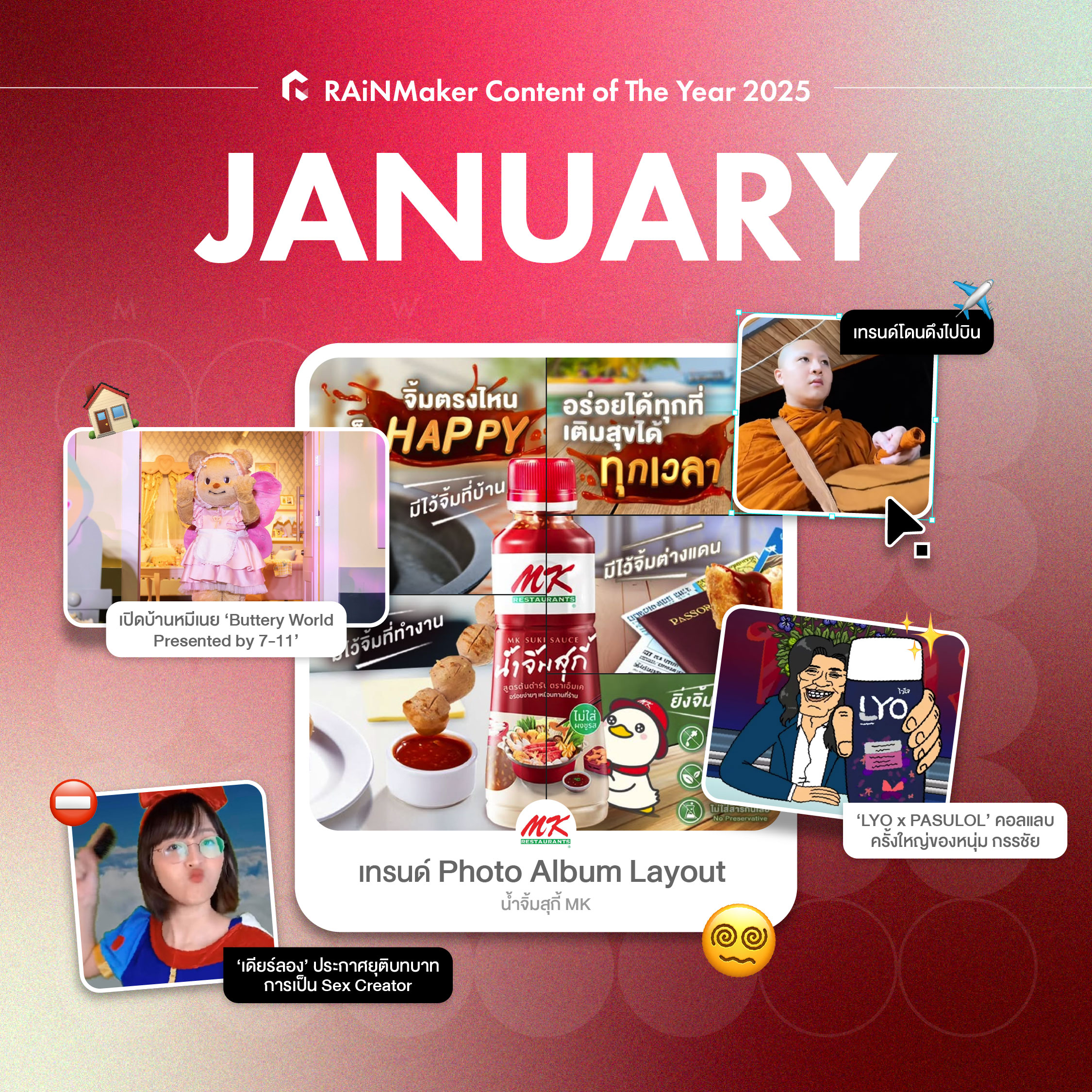 ก่อนที่จะเริ่มต้นปีใหม่กับปี 2026 ช่วงเวลาสุดยอดคอนเทนต์ ‘Content of The Year 2025’ ก็ได้กลับมาอีกครั้ง! ซึ่งคอนเทนต์แต่ละหมวดนั้นก็มีหลากหลายสถานการณ์และเหตุการณ์สำคัญไม่แพ้ปีก่อน โดยเฉพาะการอัปเดตของวงการคอนเทนต์ครีเอเตอร์ที่มีผู้ลงสนามหน้าใหม่ และผู้ที่อยู่ในสนามมานานจนต้องบอกลากันไป จนถึงไวรัลที่ฮิตติดเทรนด์และเป็นที่พูดถึงกันในไทยก็มีเพียบ ใครที่อยากรีแคปเพื่อส่งท้ายปี 2025 ทาง RAiNMaker ได้คัดมารวมให้แล้วที่บทความนี้