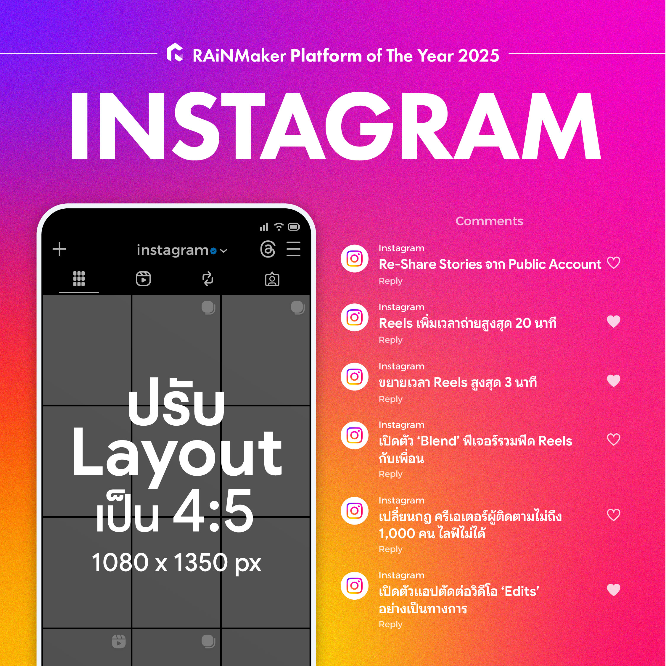 สำหรับ Instagram ในปีนี้ถือเป็นแพลตฟอร์มหลักที่มีบทบาทมากขึ้นไม่แพ้ TikTok เลยก็ว่าได้ ทำให้การอัปเดตมักจะเน้นไปที่ Reels มากขึ้น ไม่ว่าจะเป็นการเพิ่ม ‘Trial Reels’ สำหรับครีเอเตอร์ผู้ติดตาม 1,000 คนขึ้นไปและเปิด Public ให้แสดงคลิปกับผู้คนที่ไม่ได้ติดตามได้