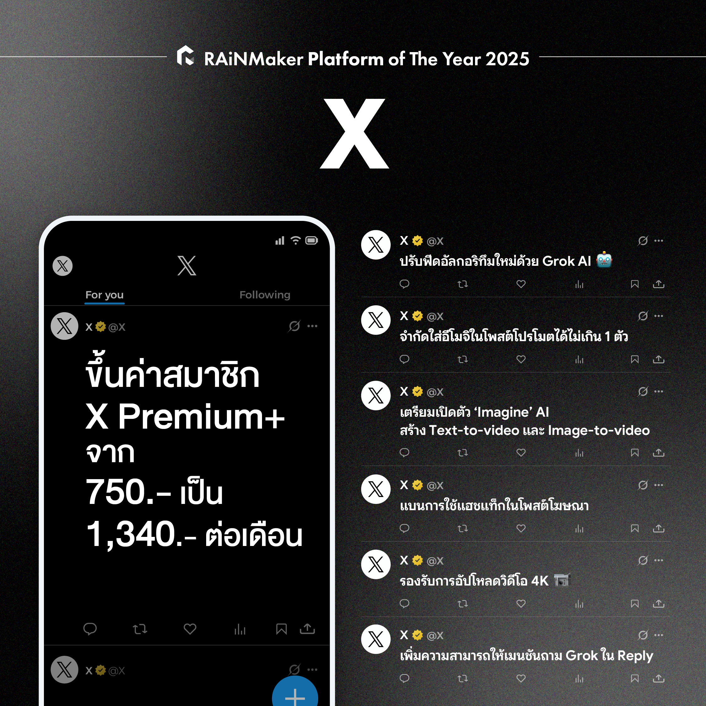 - ขึ้นค่าสมาชิก X Premium+ จาก 750 บาท เป็น 1,340 บาท/เดือน
