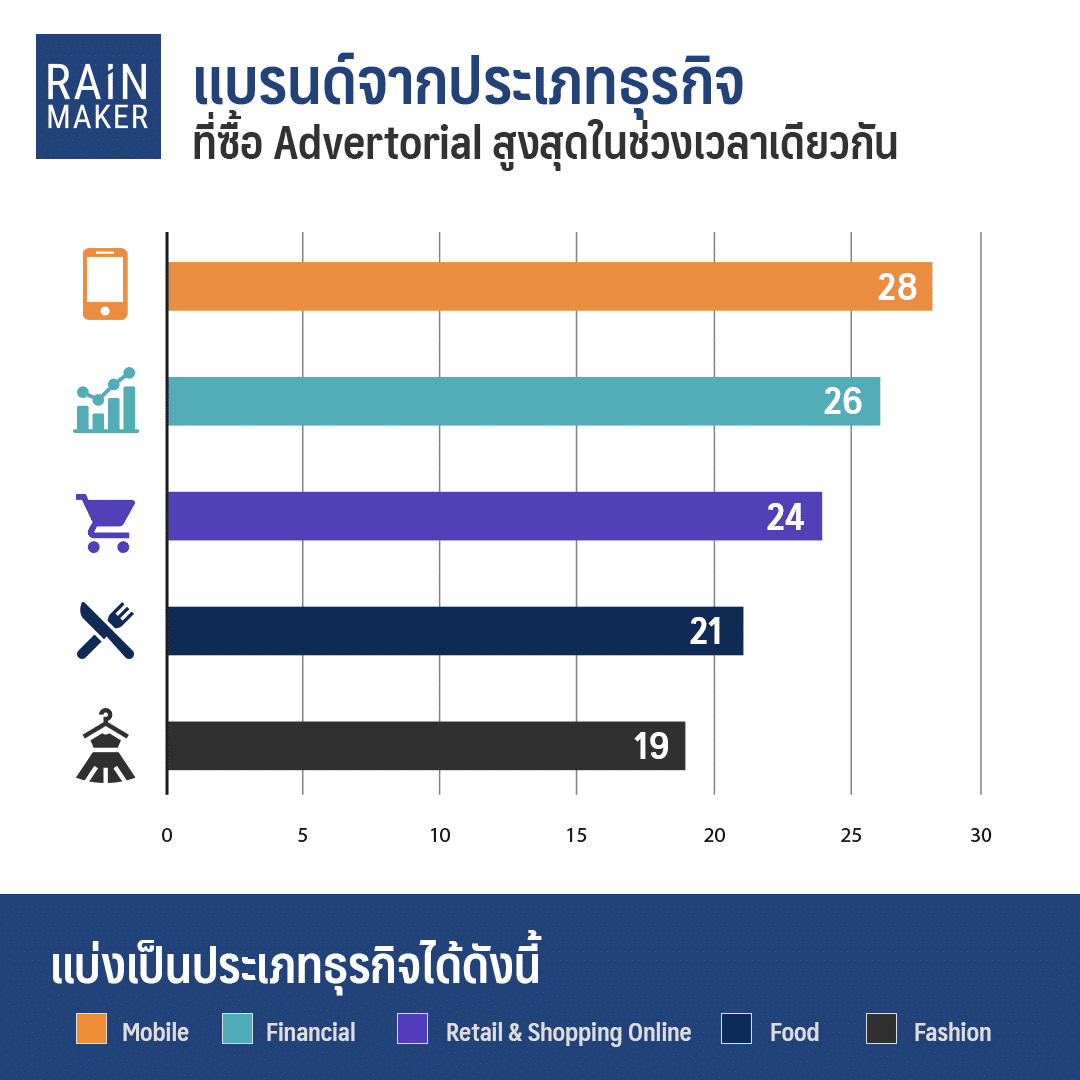 แบรนด์จากประเภทธุรกิจที่ซื้อ Advertorial สูงสุดในช่วงเวลาเดียวกัน