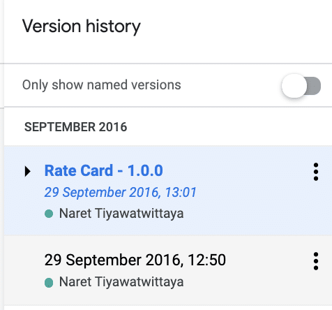 อัปโหลดไฟล์ Rate Card ของเราขึ้น Google Drive หรืออาจใช้บริการ Cloud Service เจ้าไหนก็ได้ ที่มีบริการแชร์ลิงก์ที่ดี ข้อดีของ Google Drive คือระบบจะมีฟีเจอร์ version history หรือการอัปเดตเวอร์ชั่นต่างๆ ของไฟล์ได้