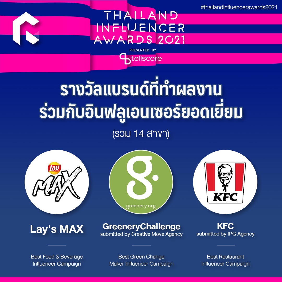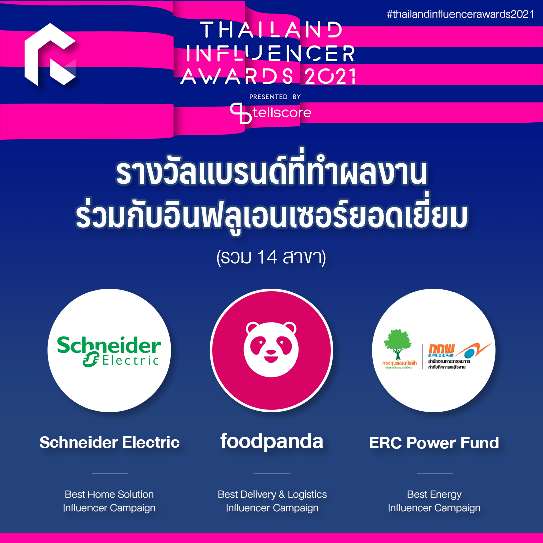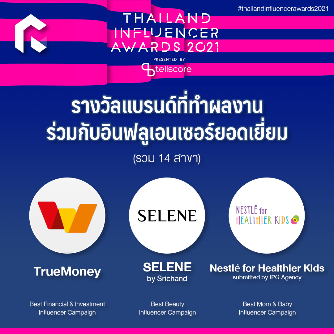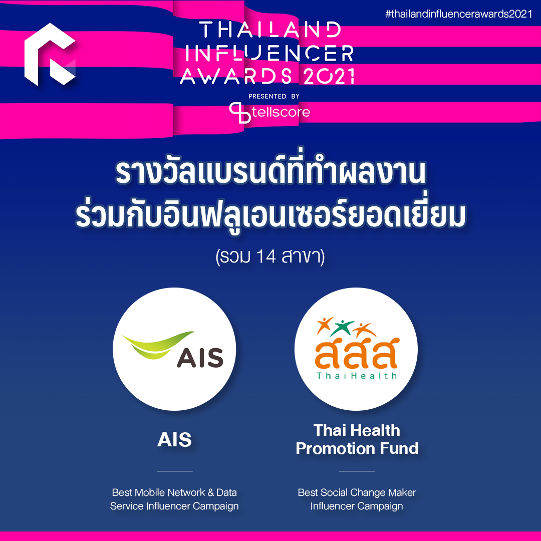 รางวัลแบรนด์ที่ทำผลงานร่วมกับอินฟลูเอนเซอร์ยอดเยี่ยม 14 สาขา