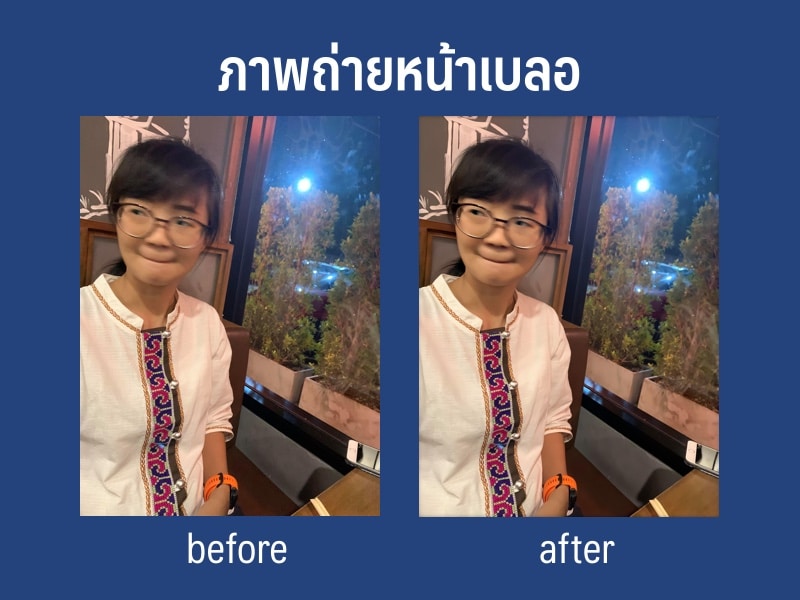 ทดสอบภาพใบหน้าที่ถูกถ่ายมาในขณะที่เคลื่อนไหว ทำให้ภาพมีความเบลอ เมื่อนำมาผ่าน Remini สังเกตว่าภาพจะมีความคมมากขึ้นมาเล็กน้อย พร้อมกับเพิ่มแสงสว่างขึ้นนิดหน่อย ไม่ได้มีความแตกต่างชัดเจนมากถ้าเทียบกับตัวอย่างที่ใช้ภาพพิกเซลต่ำ