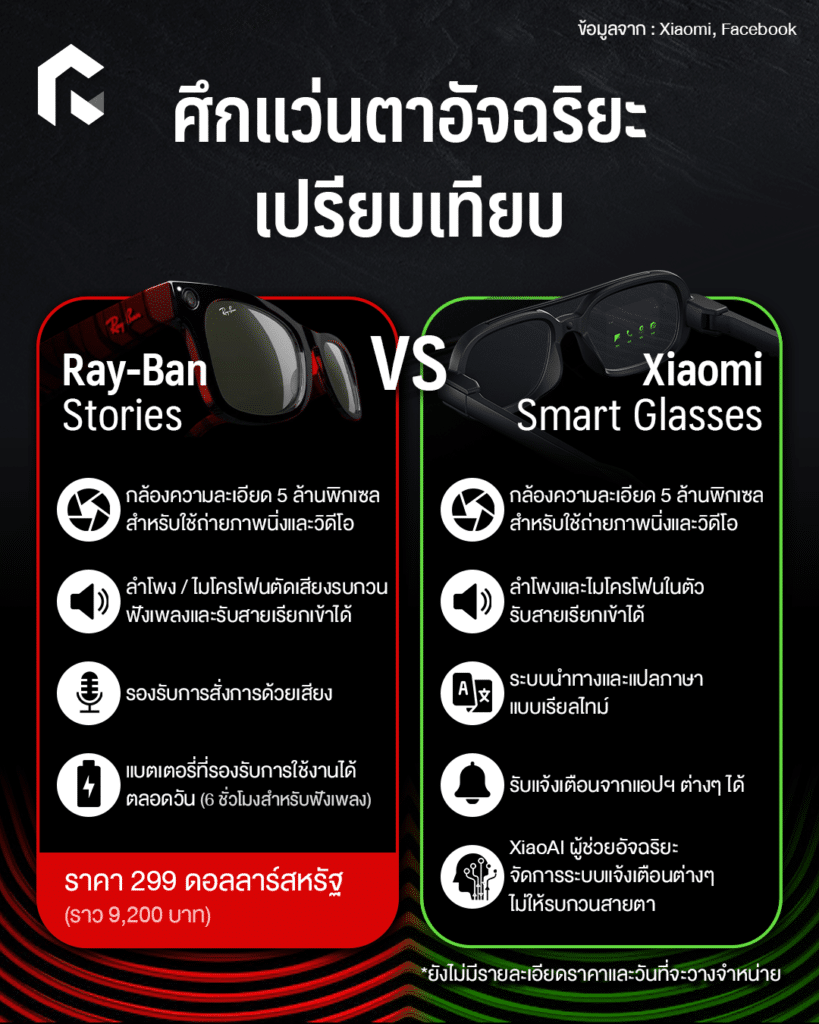 หลังจาก Facebook จับมือกับ Ray-Ban เปิดตัว ‘Ray-Ban Stories’ แว่นตาอัจฉริยะได้ไม่นาน Xiaomi บริษัทผู้ผลิตอุปกรณ์ IoT ยักษ์ใหญ่สัญชาติจีนก็ได้ทวีตเผยนวัตกรรมแว่นตาอัจฉริยะ ‘Xiaomi Smart Glasses’ ก่อนที่บริษัทจะจัดอีเวนท์ใหญ่ในวันที่ 15 กันยายนเพียงหนึ่งวัน