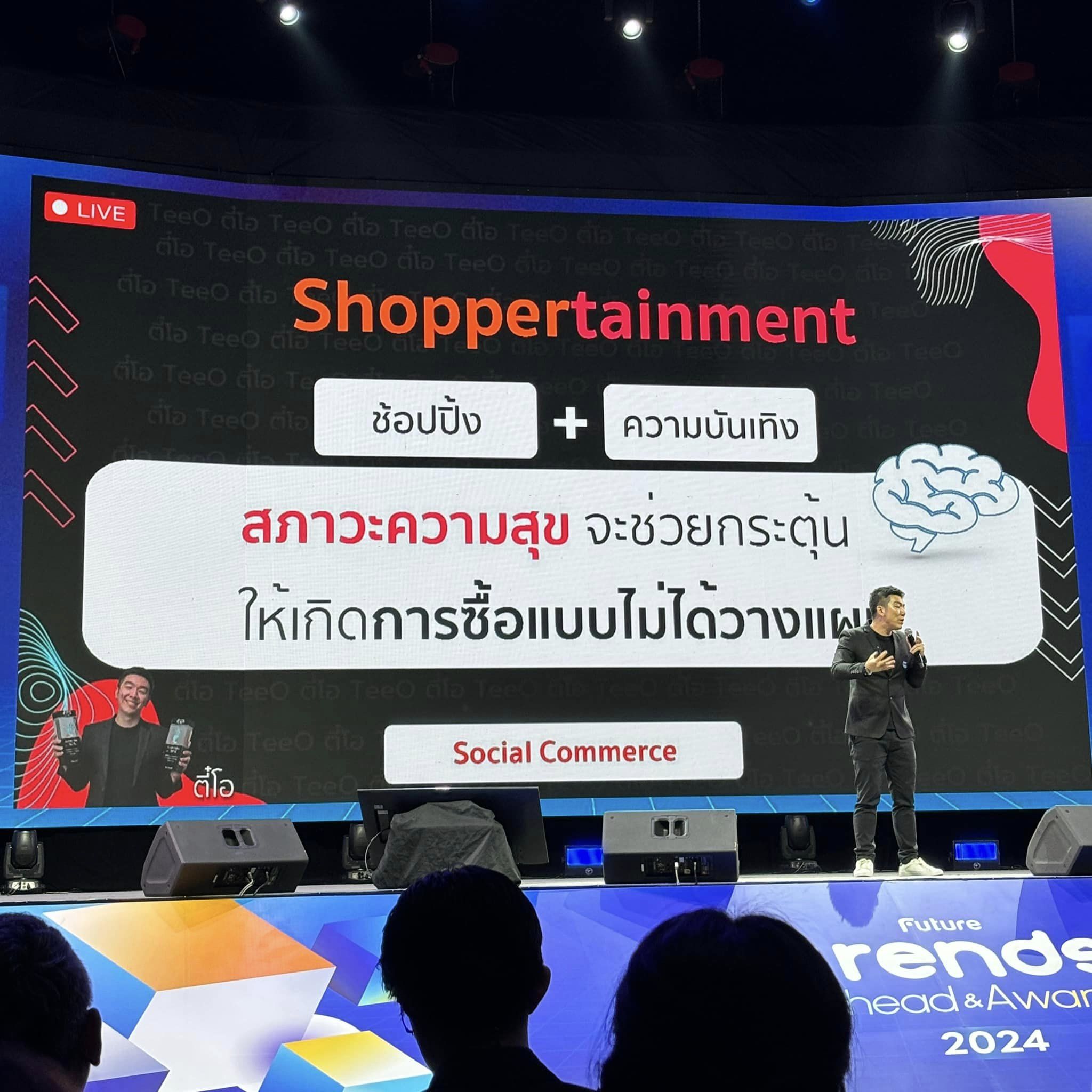 - Shoppertainment: ช้อปปิง + ความบันเทิง = สภาวะกระตุ้นความสุขที่ทำให้เกิดการซื้อแบบไม่ได้วางแผนล่วงหน้า แต่ไถฟีดแล้วเจอสินค้าก็อยากซื้อ
