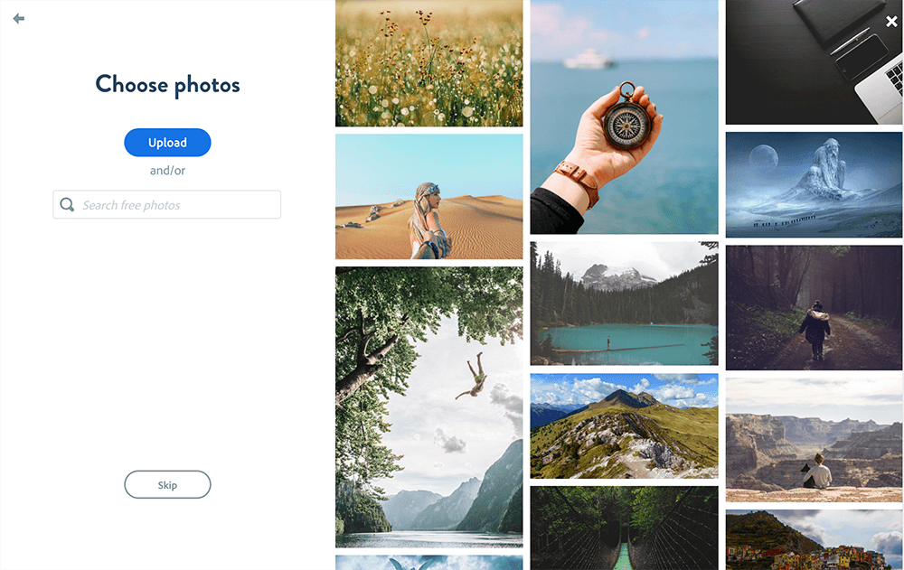 เลือกขนาดเสร็จเรียบร้อยขั้นต่อไปเราก็เลือกรูปในคลังของ Adobe ได้เลยหรือหากมีรูปเองอยู่แล้วก็สามารถทำการอัปโหลดลงไปได้เองกี่รูปก็ได้