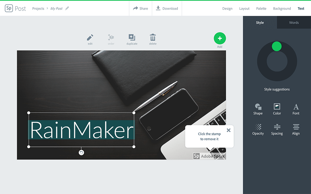 Adobe จึงถือโอกาสได้เปิดตัว Service ใหม่ที่ชื่อว่า Adobe Spark ออกมา ซึ่ง Adobe Spark นั้นคือเว็บไซต์และแอปพลิเคชันเซอร์วิสที่จะช่วยให้ Non-Designer สามารถสร้าง Social Graphic และ ตัดต่อ VDO ได้ด้วยตัวเองแบบที่ไม่ต้องมีความรู้ก็สามารถสร้างชิ้นงานสวยๆออกมาได้