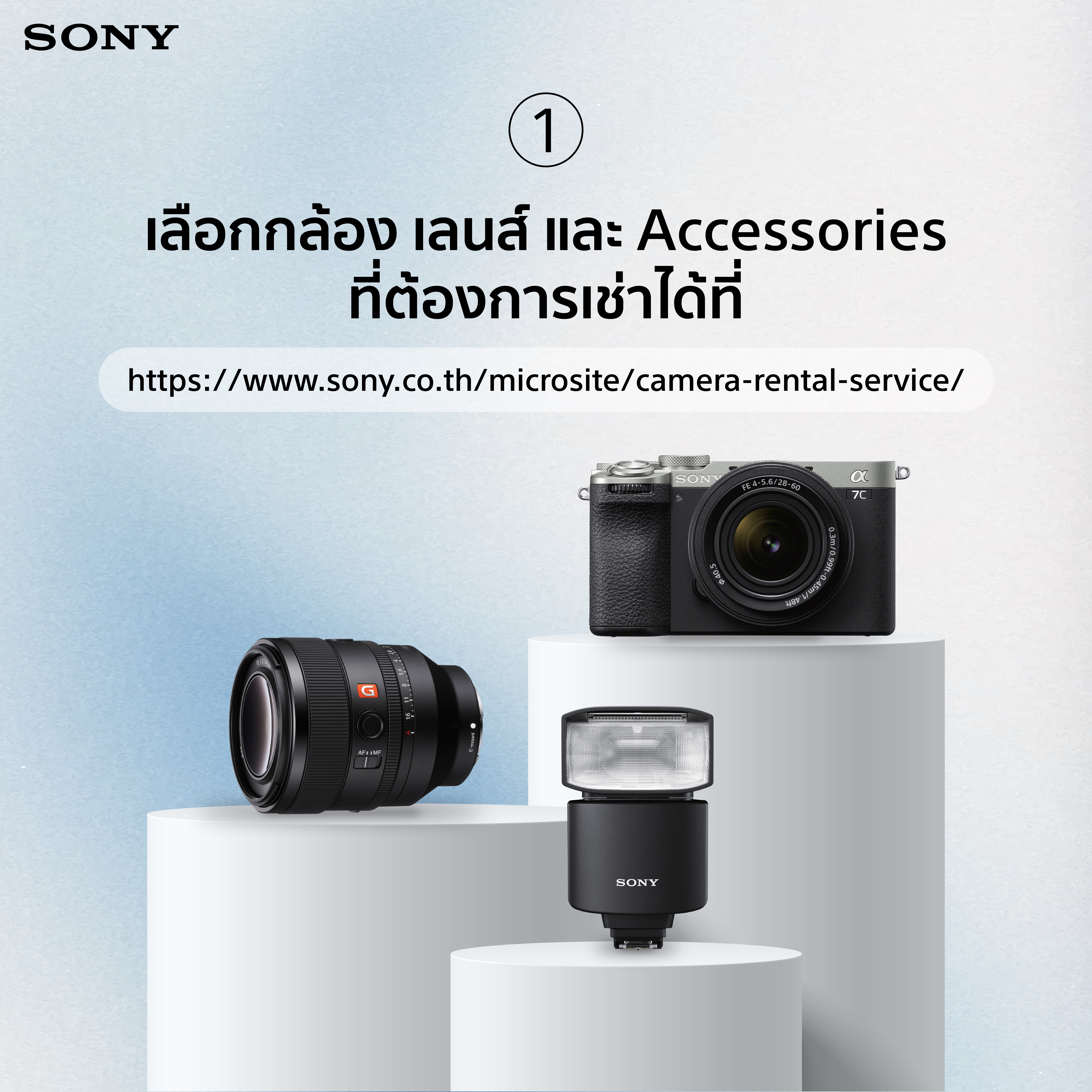 1. เลือกอุปกรณ์ที่ต้องการยืมผ่านเว็บไซต์ https://www.sony.co.th/microsite/camera-rental-service/