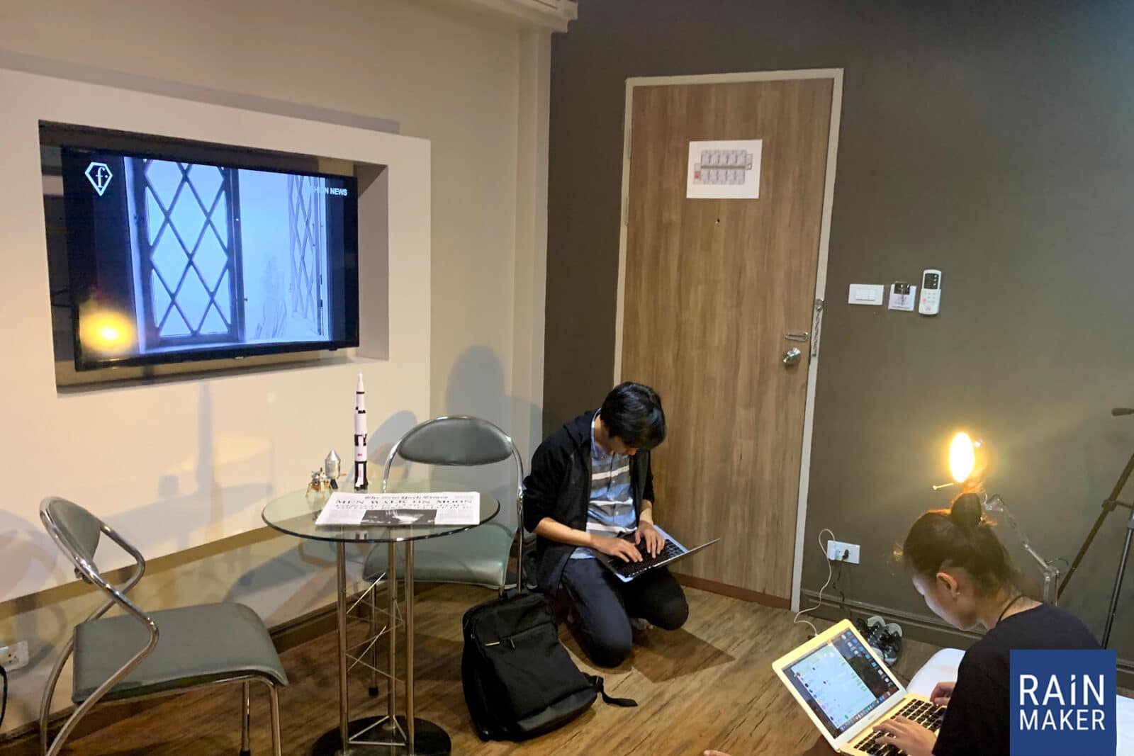 ความยากอย่างหนึ่งก็คือ ไม่มีสถานที่ เนื่องจากทีมของเราเป็นทีมนักเรียน นักศึกษากัน การเช่าออฟฟิศเพื่อทำงานจึงไม่คุ้มเพราะเวลาในออฟฟิศน้อยแน่ ๆ ปกติเวลาที่เราเลือกทำงานกันคือเวลากลางวัน การเช่า Studio หรือ Co-Working Space สามารถทำได้ไม่ยาก แต่ในกรณีนี้ ข้ามคืน บางคนตอนเช้าต้องรีบไปงานต่อ บางคนกลับมาจากงานหรือเรียนตอนเย็น ดังนั้นคงไม่มีตัวเลือกอะไรที่เหมาะไปกว่าการ เช่าโรงแรม เพราะมีสถานที่ให้อาบน้ำและนอนพักผ่อนระหว่างขั้น Live แต่ละช่วง
