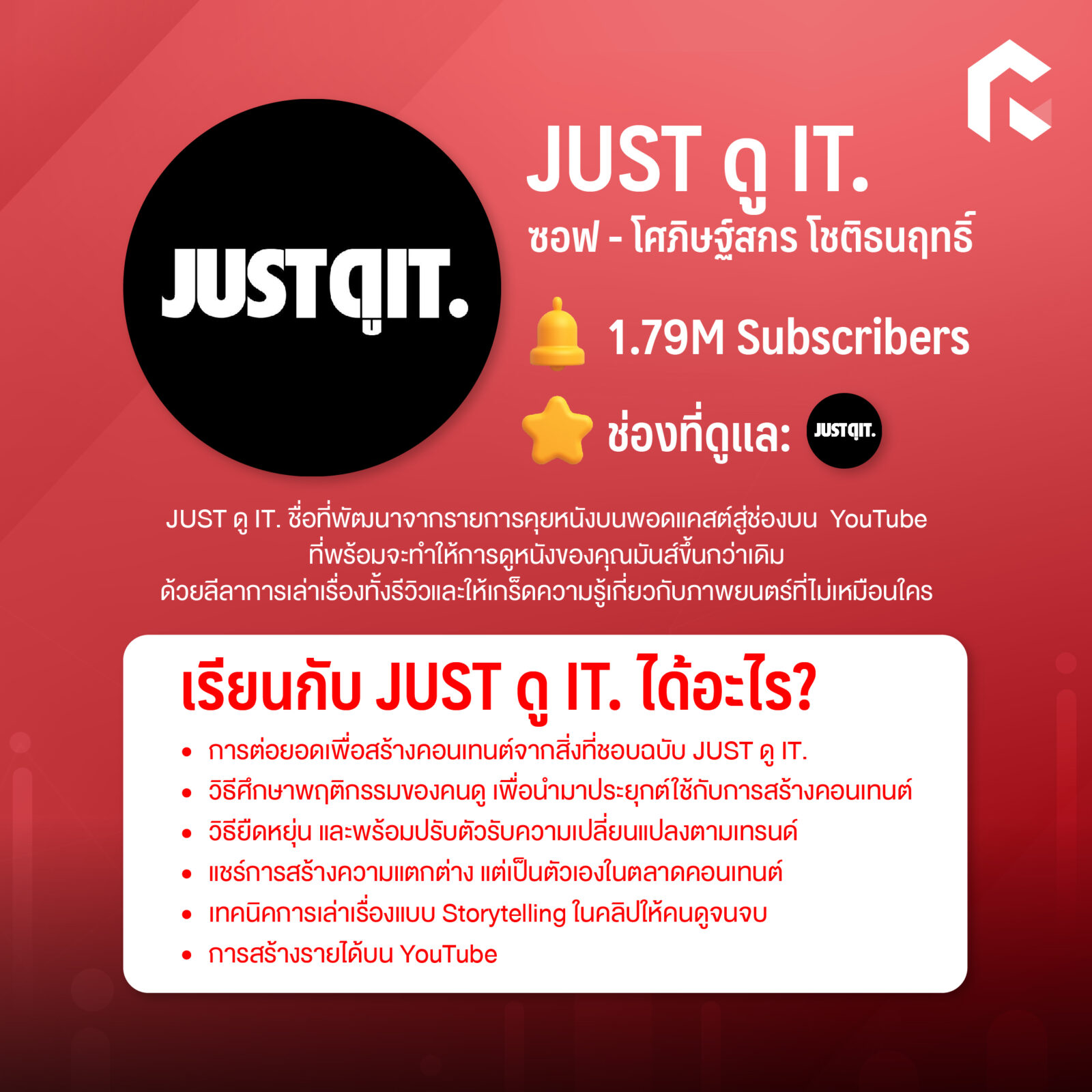 - การต่อยอดเพื่อสร้างคอนเทนต์จากสิ่งที่ชอบฉบับ JUST ดู IT.