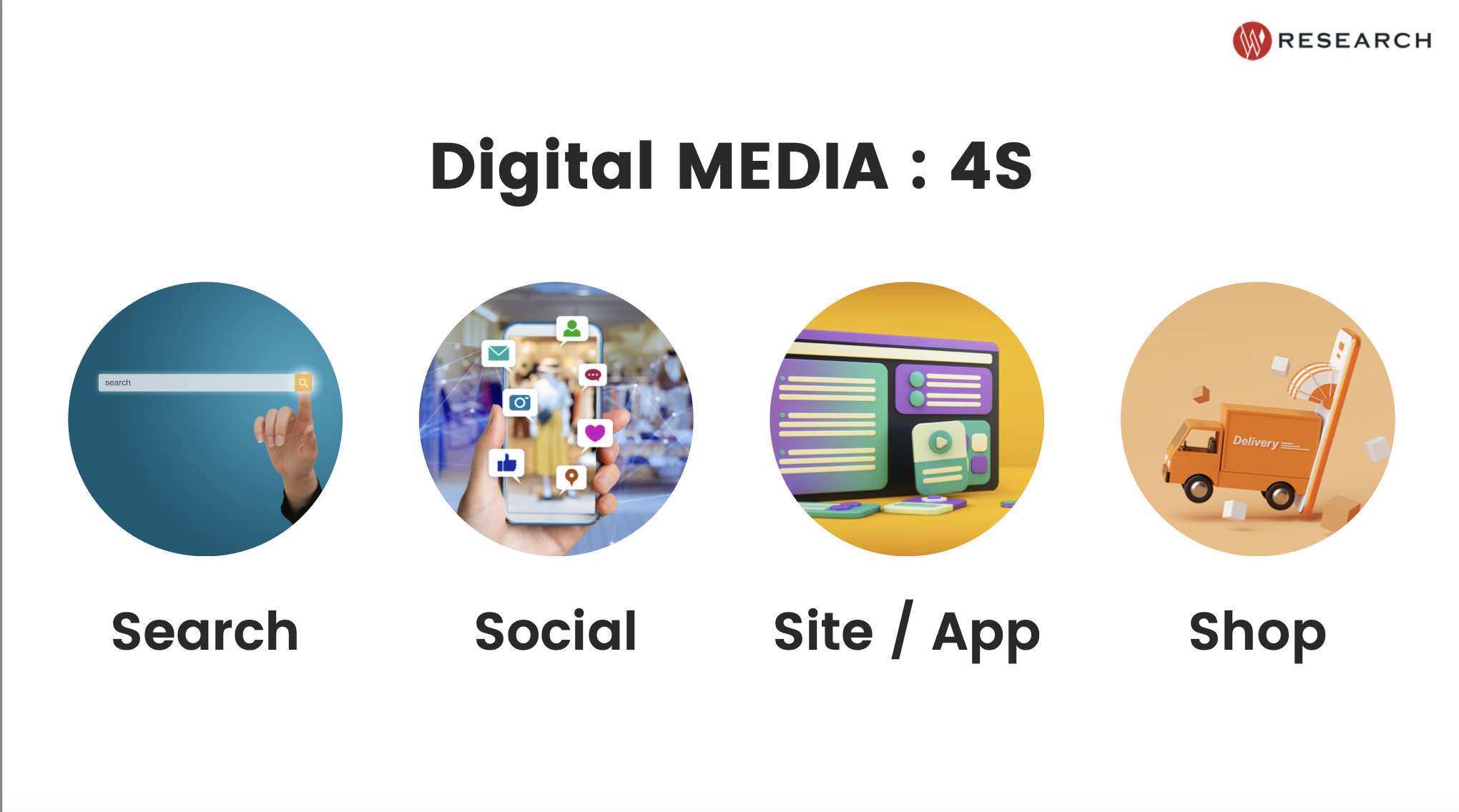 ในส่วนของ Data Analytics ที่หา Insight ผ่านพฤติกรรมของกลุ่มเป้าหมาย โดยหลักแล้วมักจะมองผ่าน “4S” นั่นก็คือ Search, Social, Site/App และ Shop