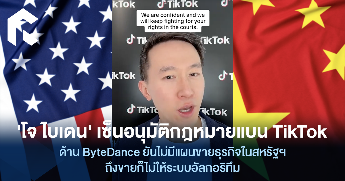 หลังจากที่ ‘โจ ไบเดน’ เซ็นอนุมัติกฎหมายบังคับให้ ByteDance ขาย TikTok ไม่เช่นนั้นจะโดนแบนในสหรัฐฯ ก็ถือว่านาฬิกาได้เริ่มนับเวลาถอยหลัง บีบบังคับให้ ByteDance ขายหุ้นภายใน 9 เดือน และประธานาธิบดีอาจเซ็นอนุมัติขยายเวลาเพิ่มให้อีก 3 เดือน หากทาง ByteDance มีการเคลื่อนไหวระหว่างทาง