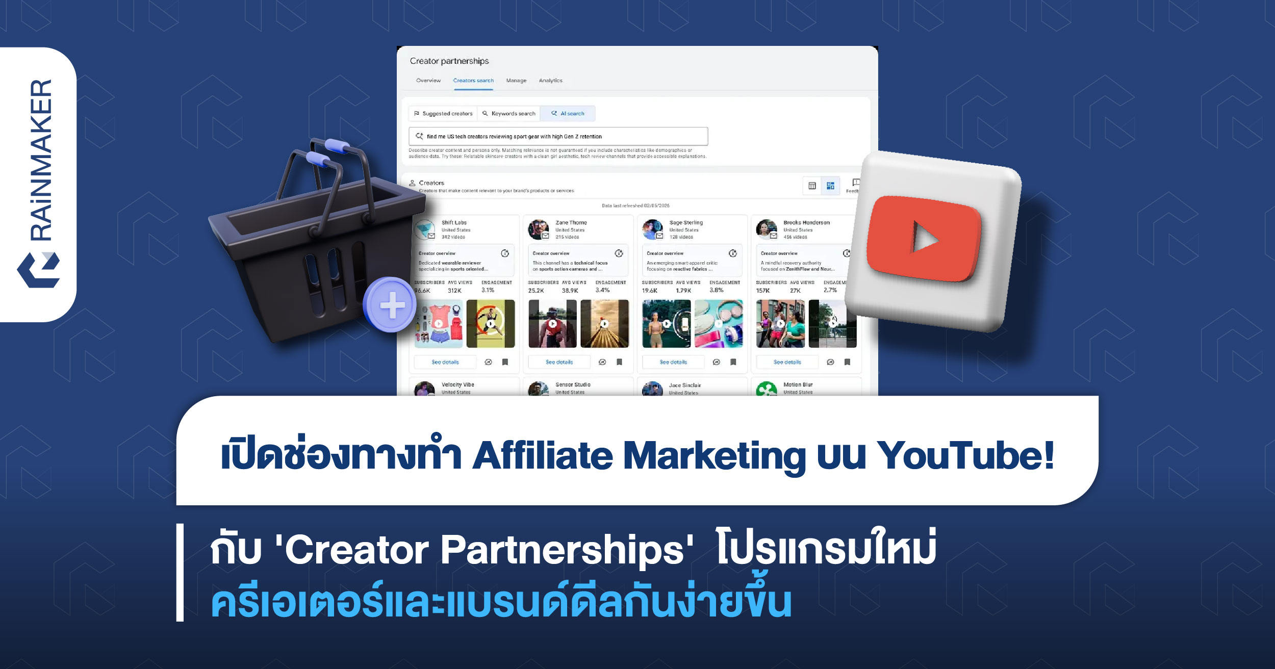 พี่ใหญ่อย่าง YouTube เตรียมเปิดตัวโปรแกรมใหม่ ‘Creator Partnership’ มาเป็นตัวกลางช่วยให้การทำ Brand Deal หรือการว่าจ้างงานระหว่างครีเอเตอร์และแบรนด์ได้ง่ายและสะดวกสบายมากขึ้นในโปรแกรมเดียว