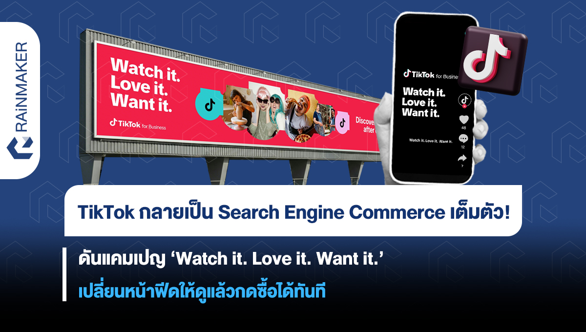 TikTok เดินหน้ารุกฝั่งธุรกิจและครีเอเตอร์อีกขั้น ด้วยการเปิดตัวแคมเปญใหม่ ‘Watch it. Love it. Want it.’ ภายใต้ TikTok for Business ที่สะท้อนชัดว่าแพลตฟอร์มไม่ได้เป็นแค่พื้นที่ดูคอนเทนต์อีกต่อไป แต่พัฒนาแพลตฟอร์มให้กลายเป็นจุดเริ่มต้นของการค้นหา ก่อให้เกิดความต้องการ และปิดจบการขายได้ในที่เดียว