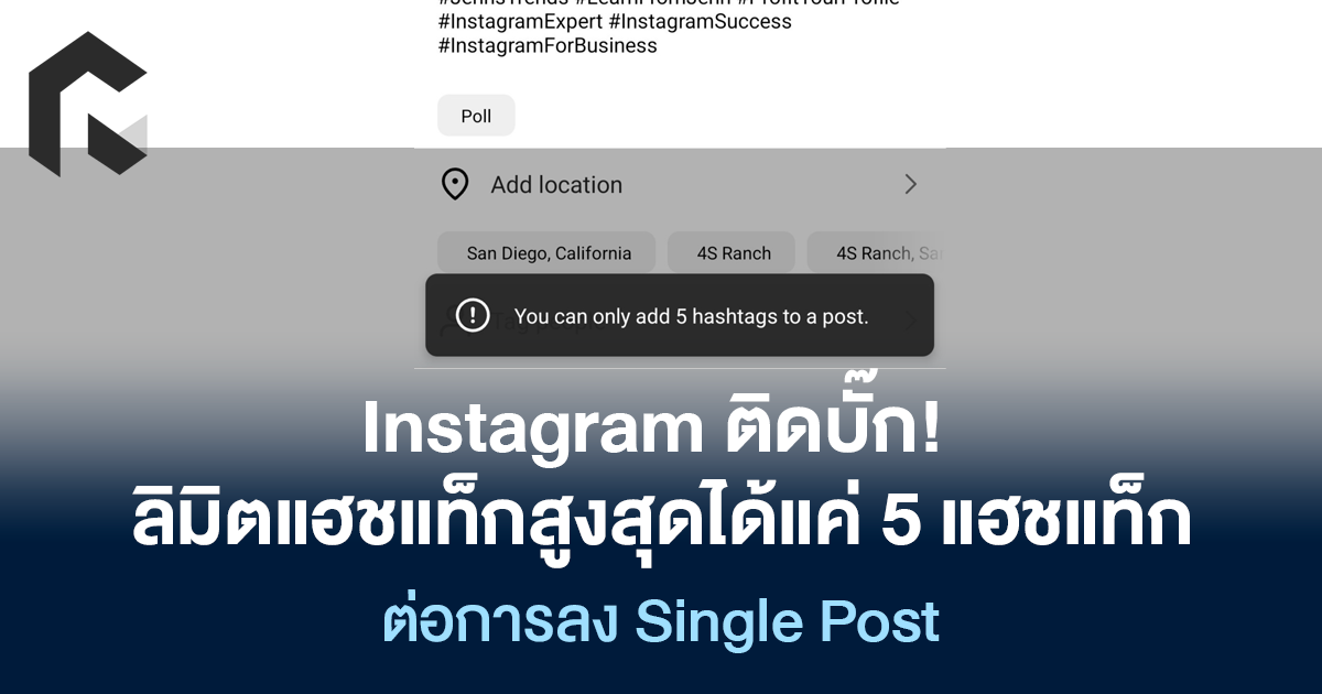 นับเป็นการทดสอบที่น่าสนใจมาก ๆ สำหรับ Instagram เพราะตอนนี้กำลังทดสอบการลิมิตแฮชแท็กต่อโพสต์ สำหรับการแชร์แบบ Single Post หรือภาพเดี่ยวกับผู้ใช้งานบางกลุ่มในอเมริกาอยู่ ซึ่งจะใช้ได้สูงสุดแค่ 5 แฮชแท็กเท่านั้น แต่มีการอัปเดตจาก Instagram ภายหลังแล้วว่าเป็นเพียงข้อผิดพลาด