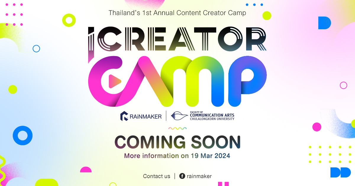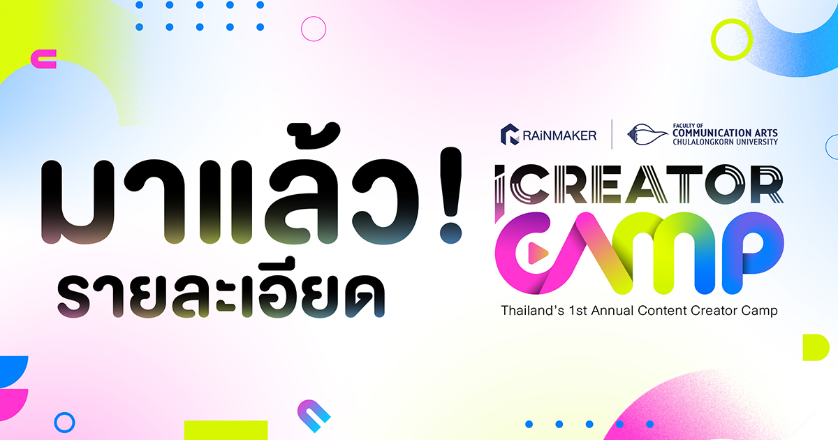 RAiNMaker จับมือคณะนิเทศศาสตร์ จุฬาฯ เปิดตัว ‘iCreator Camp 2024: ก้าวแรกสู่การเป็นคอนเทนต์ครีเอเตอร์มืออาชีพ’ อย่างเป็นทางการ พร้อมเปิดรับสมัครครีเอเตอร์ 100 คนมาร่วมแคมป์อัปสกิลกับเหล่าครีเอเตอร์ตัวท็อปของวงการกว่า 20 ท่าน ตั้งแต่วันนี้จนถึง 26 เม.ย. 67