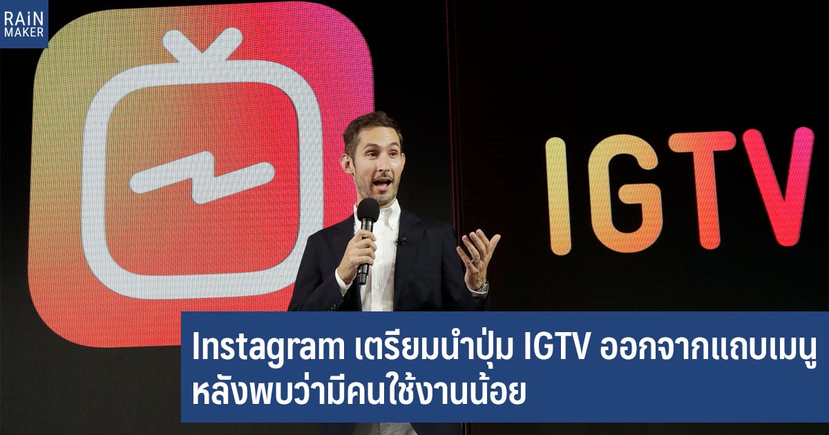 ทางอินสตาแกรมประกาศขอนำปุ่ม IGTV ออกจากแถบเมนูด้านขวาบน (ข้างปุ่ม Direct Message) แต่อย่าตกใจไปค่ะ ทุกคนยังสามารถใช้งานได้ปกติเหมือนเดิมในแอปพลิเคชันอินสตาแกรม หรือรับชมผ่านแอปพลิเคชันแยก IGTV ได้เช่นกันค่ะ โดยเหตุผลที่นำปุ่มออกมาจาก ยอดคนใช้งานน้อยกว่าเป้าหมายที่ตั้งไว้ Content Creators ทั้งหลายไม่ให้ความสำคัญเท่ากับ YouTube ทำให้เฟซบุ้กที่เป็นเจ้าของเดียวกันกับอินสตาแกรม กำลังยอมแพ้ในไอเดียนี้และเริ่มลดบทบาทแพลตฟอร์ม IGTV ลง