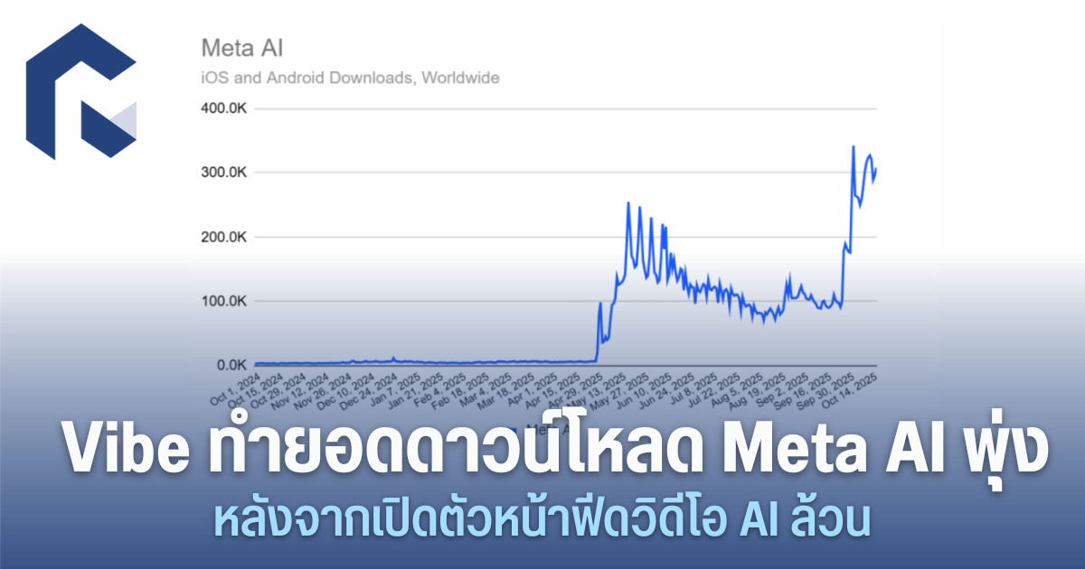 จากข้อมูลของ Similarweb เผยว่าแอป Meta AI กำลังได้รับความนิยมจากผู้ใช้เป็นอย่างมาก หลังการเปิดตัวฟีเจอร์ใหม่ในชื่อ ‘Vibes’ ที่ให้ผู้ใช้สามารถสร้างวิดีโอด้วยการป้อนคำสั่งผ่าน AI โดยข้อมูลระบุว่ายอดผู้ใช้งานต่อวัน (Daily Active Use) ของแอปบน iOS และ Android เพิ่มขึ้นอย่างก้าวกระโดด
