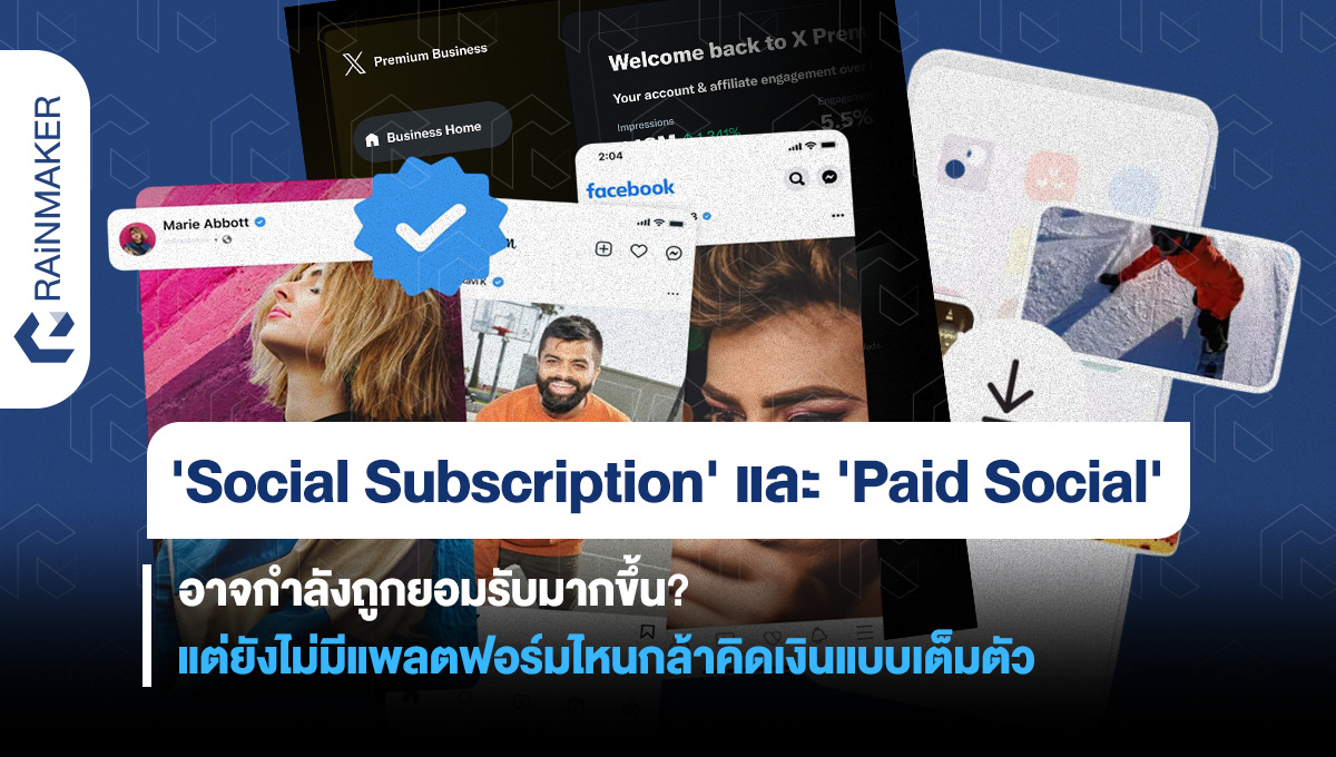 ในช่วงหลายปีที่ผ่านมานี้ เราจะเริ่มสังเกตได้ว่าแพลตฟอร์มโซเชียลมีเดียต่าง ๆ เริ่มที่จะมีตัวเลือก ‘Subscription’ หรือการสมัครสมาชิกแบบพรีเมียมตามแพ็กเกจ ให้กลายเป็น ‘Paid Social’ มากขึ้นกว่าเดิม แต่ผู้ใช้ที่เสียเงินก็แลกมากับการลดการมองเห็นโฆษณาลง และได้รับสิทธิพิเศษกว่าคนอื่นเพิ่มขึ้น จึงเกิดการตั้งคำถามว่าการเสียเงินเพื่อจ่ายไปกับแพลตฟอร์มอาจถูกยอมรับมากขึ้นหรือไม่