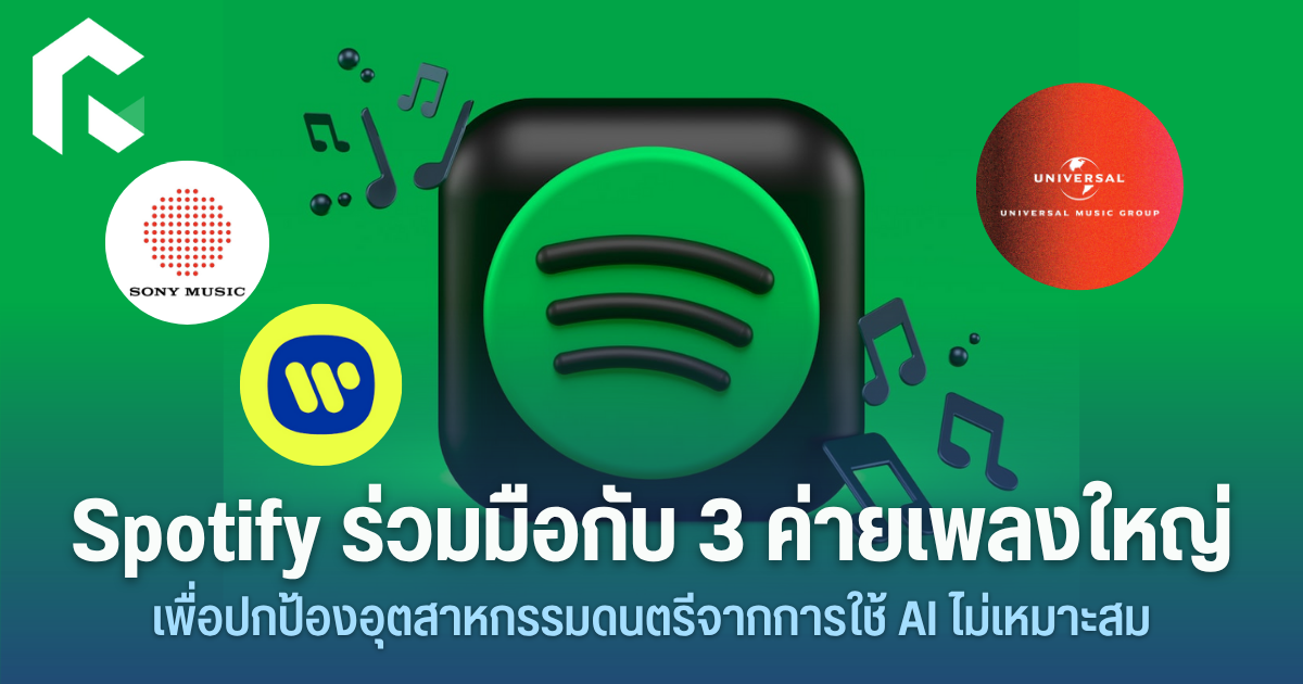 Spotify ประกาศความร่วมมือกับ 3 ค่ายเพลงรายใหญ่ของโลกได้แก่ Sony Music, Universal Music และ Warner Music เพื่อพัฒนา AI ด้านดนตรีช่วยเสริมศักยภาพให้ศิลปิน และนักแต่งเพลงให้เชื่อมโยงกับผู้ฟังได้ดียิ่งขึ้น รวมถึงเป็นการปกป้องอุตสาหกรรมจากกการใช้งาน AI ที่ไม่เหมาะสม เช่น การสร้างเพลง หรือเสียงร้องเลียนแบบโดยไม่ได้รับอนุญาต