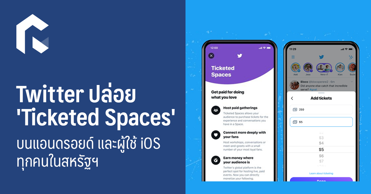 Twitter Twitter ปล่อย 'Ticketed Spaces' บนแอนดรอยด์ และผู้ใช้ iOS ทุกคนในสหรัฐฯ เมื่อเดือนสิงหาคมที่ผ่านมา ทวิตเตอร์ได้เปิดให้ผู้ใช้ iOS บางกลุ่มได้ใช้ Ticketed Spaces ไปก่อนหน้านี้แล้ว ขณะนี้จึงได้เปิดให้ผู้ใช้ iOS ทุกคนในสหรัฐฯ สามารถใช้งานตัวเลือกดังกล่าว รวมถึงเปิดให้ผู้ใช้แอนดรอยด์สามารถใช้งานได้เช่นกัน FacebookTwitterLine doyoumind October 18, 2021 อ่านต่อ