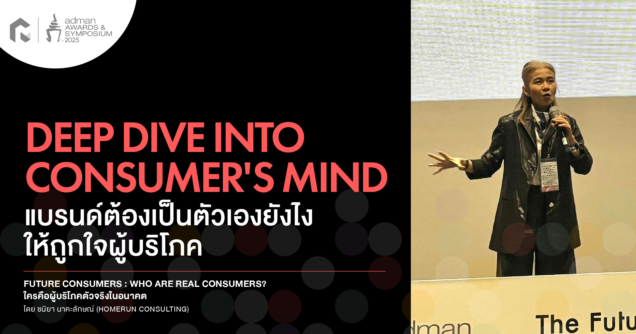 สรุป Deep Dive into Consumer’s Mind แบรนด์ต้องเป็นตัวเองยังไงให้ถูกใจผู้บริโภค ใน Session: Future Consumers : Who are real consumers? ใครคือผู้บริโภคตัวจริงในอนาคต ที่งาน Adman Awards And Symposium 2025: The Future Of Advertising Is Humanity โดย ชนิยา นาคะลักษณ์ (Homerun Consulting)
