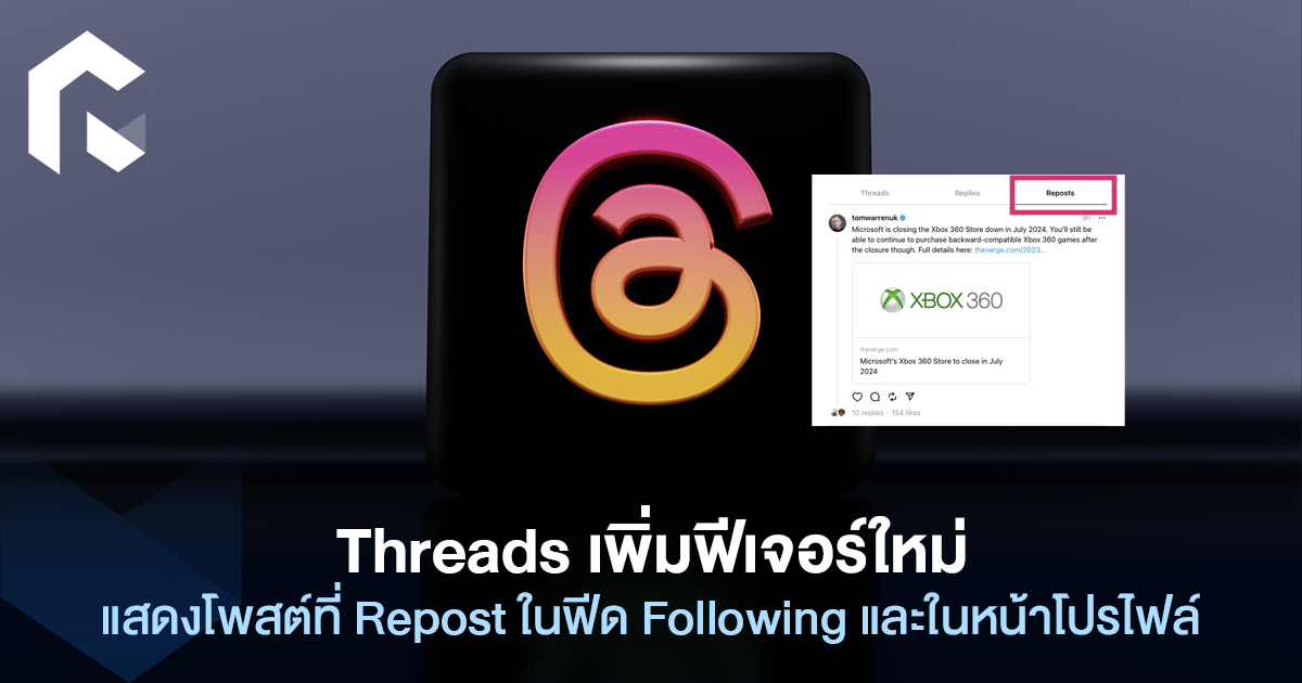 หลังจากผู้ใช้เรียกร้องมานาน Threads ก็ได้เพิ่มให้สามารถเห็นโพสต์ที่ถูก Repost บนหน้าฟีดคล้ายกับการ Retweet บน X (Twitter) เพื่อให้เห็นโพสต์นอกเหนือจากคนที่ตัวเองติดตาม รวมถึงเพิ่มแท็บ Repost บนหน้าโปรไฟล์ของแต่ละคน เพื่อให้ง่ายต่อการกลับมาดูว่าเรา Repost อะไรไปบ้าง