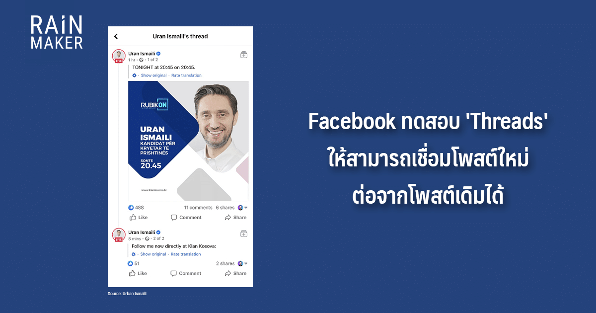 ถึงเวลาแล้ว! ที่ Twitter จะมีคู่แข่งสมน้ำสมเนื้ออย่างแอป “Threads” ขึ้นมา ซึ่งมาได้ทันเวลาพอดีกับช่วงที่ชาวทวิตเตี้ยนอยากจะหนีจากการจำกัดการมองเห็นทวีต และการโควตที่ถูกปิดกั้น ซึ่ง RAiNMaker เองก็มีทั้ง Instagram และ Threads ให้ติดตามแล้วน้า