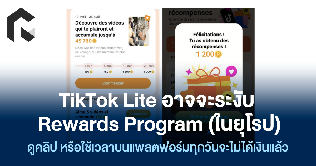 TikTok Lite แอปที่เป็นเวอร์ชันแยกตัวออกมาจาก TikTok อีกที เพียงแต่มีการใช้งานที่ง่ายแม้จะใช้งานโดยใช้อินเทอร์เน็ตความเร็วต่ำก็ตาม เพราะไม่ได้มีการดาวน์โหลดอะไรเยอะให้หนักเครื่อง แต่เพราะไม่ได้มีการโปรโมตเยอะ Rewards Program ก็เลยเป็นจุดสำคัญที่ทำให้คนอยากดูคลิป และมีส่วนร่วมทุกวัน แต่ตอนนี้โปรแกรมนั้นกำลังจะถูกระงับแล้ว