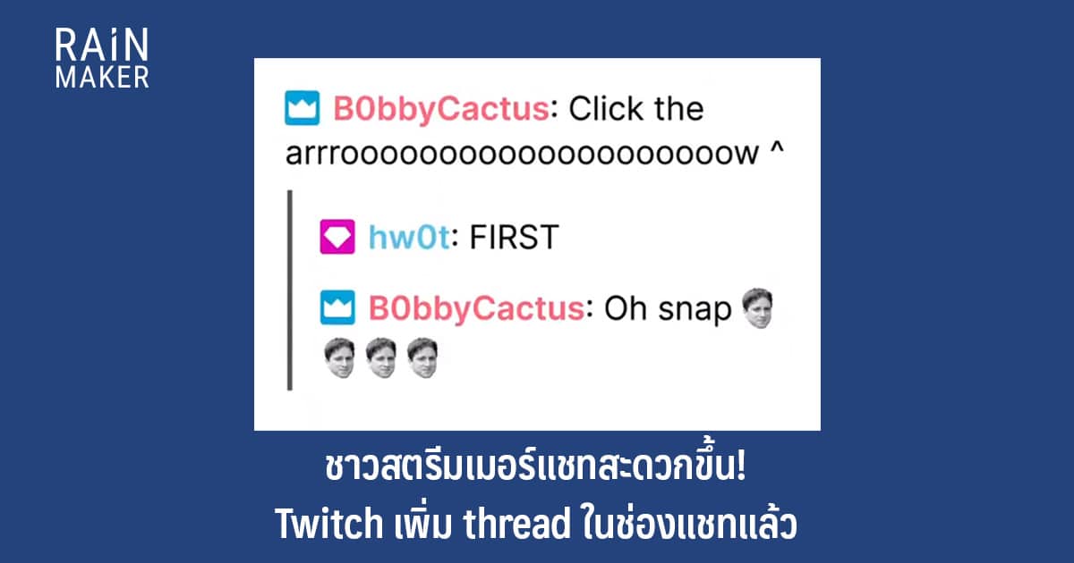 ผู้ใช้งาน Twitch จะสามารถตอบเป็น thread ในช่องแชทเหมือนกับทวิตเตอร์ในตั้งแต่วันนี้ ซึ่งจะทำให้ง่ายต่อการสนทนามากขึ้น เนื่องจากบางครั้งข้อความจำนวนมากหลั่งไหลมาจนจับประเด็นกันไม่ทัน ทำให้การโต้ตอบพลาดกันไปบ้าง หรือยากต่อการทำความเข้าใจว่าใครตอบใครกันแน่ Twitch เลยปล่อยฟีเจอร์ที่เรียกว่า Chat Replies เพื่อมาแก้ปัญหาเหล่านี้ซะเลย