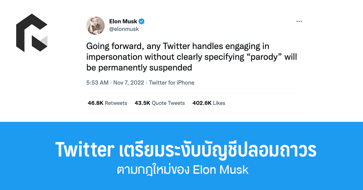 Twitter ถือเป็นแหล่งรวมทั้งบอต และบัญชีปลอมที่ถูกสร้างขึ้นมามากมายเพื่อเป็นสแปม และอาชญกรทางอินเทอร์เน็ต ซึ่งตั้งแต่ Elon Musk เข้ามาดูแล Twitter ในฐานะซีอีโอ ก็มีกฎจะเข้มงวดกับการกำจัดบัญชีเหล่านั้นเพิ่ม รวมถึงเตรียมระงับบัญชีที่มีการปลอมแปลงเป็นตัวเอง และคนอื่นด้วย