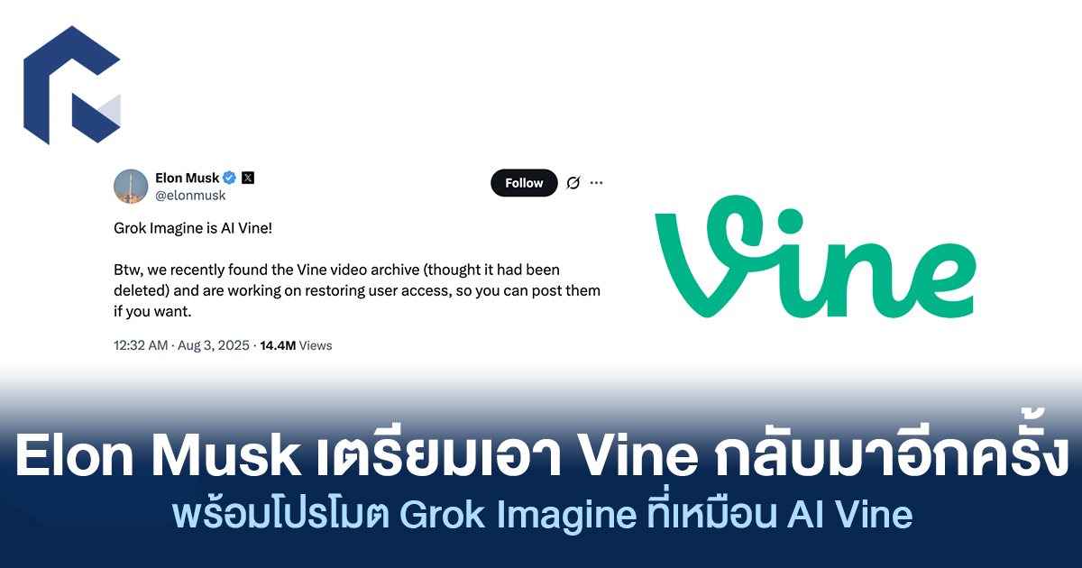 Elon Musk ประกาศว่ากำลังเตรียมนำคลังวิดีโอ ‘Vine’ แอปวิดีโอสั้นในยุคบุกเบิกกลับมาให้ใช้งานกันได้อีกครั้ง หลังจากที่ทุกคนเชื่อกันว่าแพลตฟอร์มถูกลบไปแล้ว