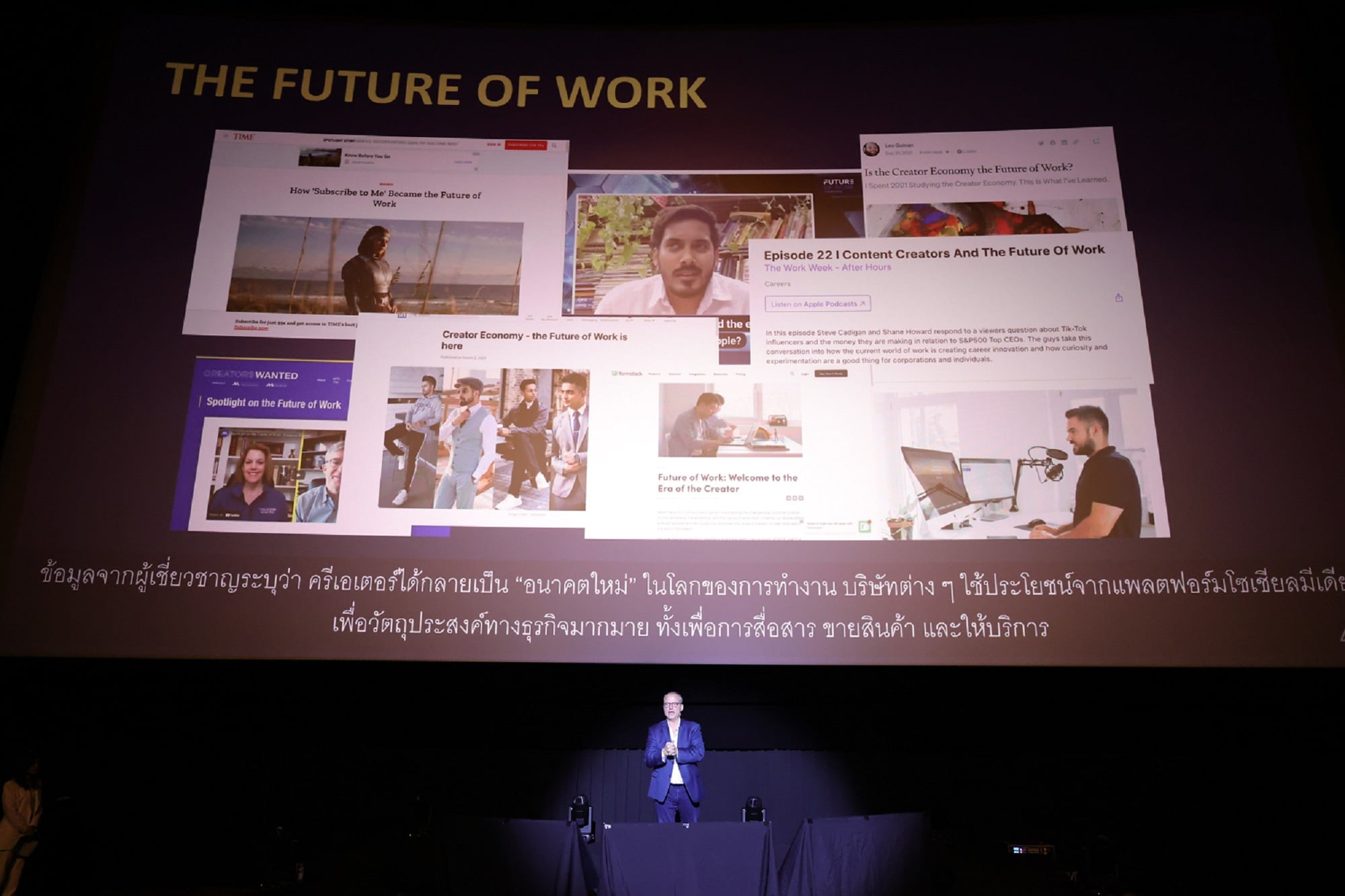 โดยเดวิด เครคได้ศึกษาตลาด และ Creator Culture ของไทยผ่านการร่วมกับ AIS รวมถึง RAiNMaker ก็ได้มีโอกาสเป็นส่วนหนึ่งที่ได้แชร์ข้อมูลเกี่ยวกับวงการคอนเทนต์ครีเอเตอร์ในปัจจุบันให้สามารถเก็บข้อมูล ทั้งมิติเศรษฐกิจ สังคม วัฒนธรรม กับเดวิด เครคมาเล่าสู่กันฟังบนเวทีนี้ด้วย