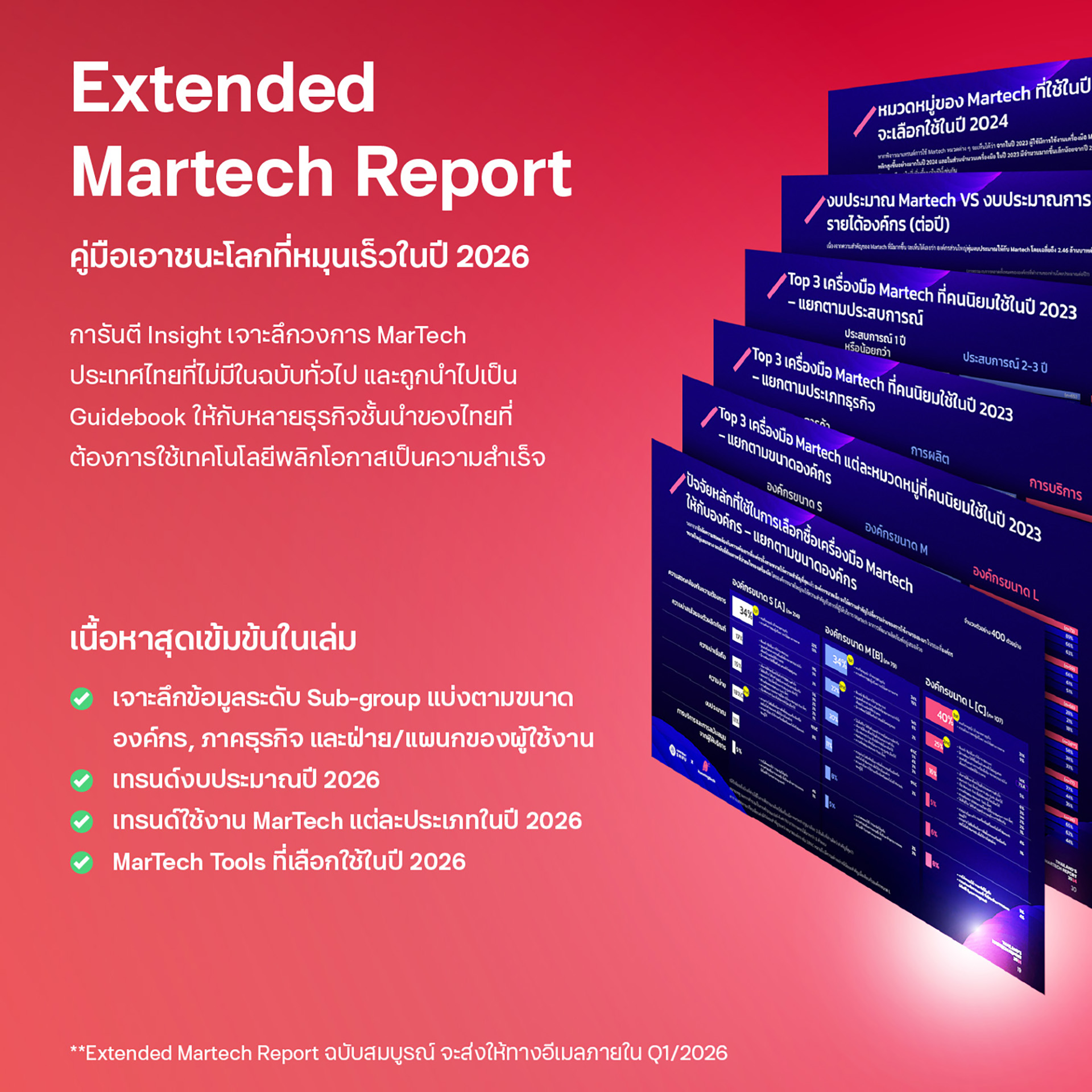 - Thailand’s Extended MarTech Report 2026 ฉบับพิเศษฟรี! มีข้อมูลเจาะลึกกว่าฉบับทั่วไป อาทิเช่น