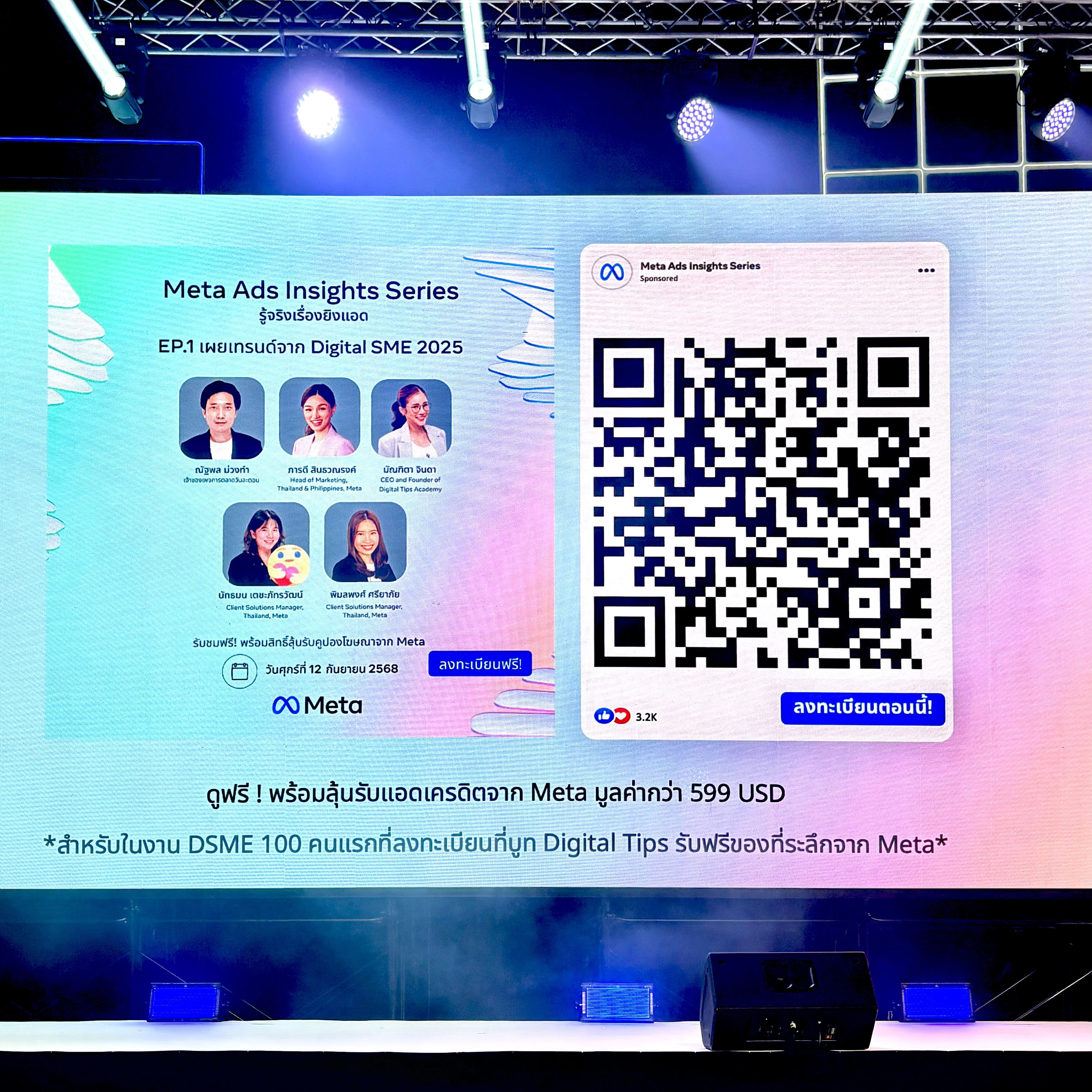- *สำหรับในงาน DSME 100 คนแรกที่ลงทะเบียนที่บูธ Digital Tips รับฟรีของที่ระลึกจาก Meta