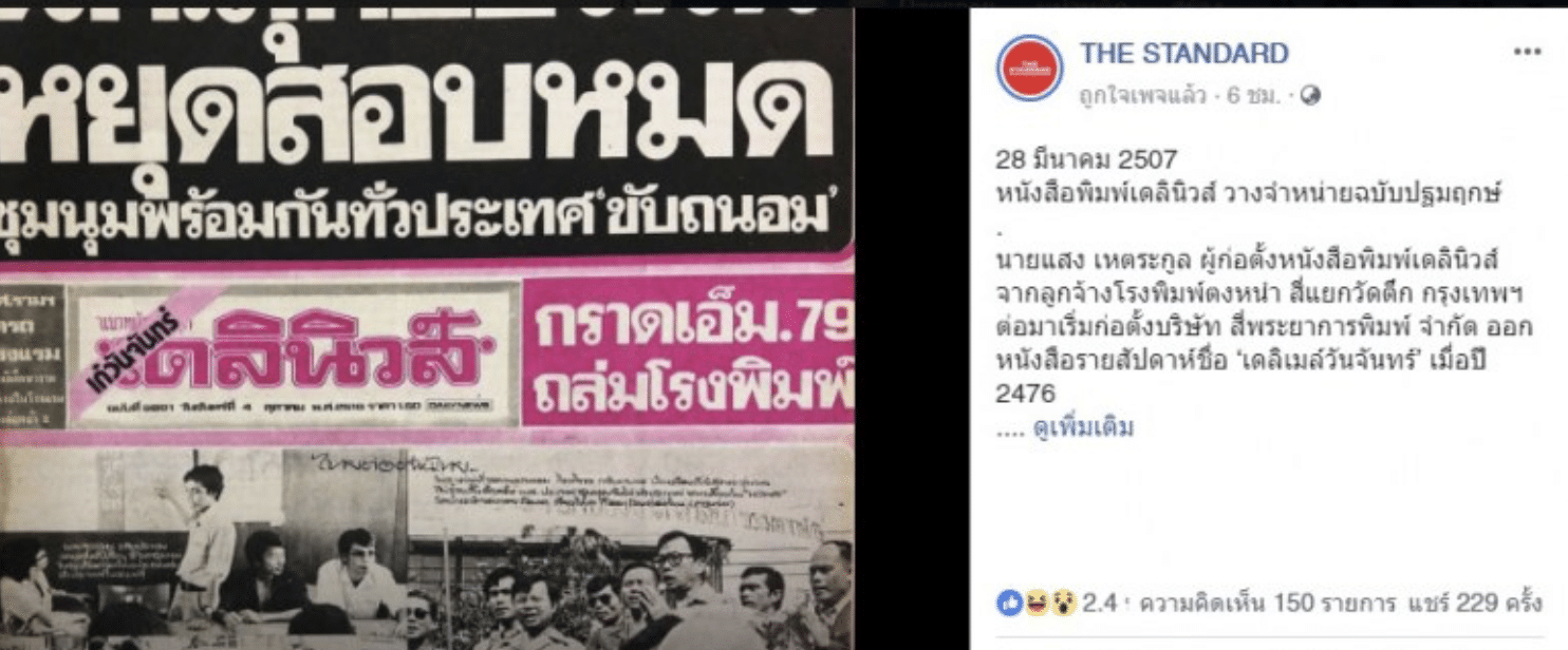 เรื่องราวนี้เริ่มต้นจากการที่ The Standard ลงข่าวเกี่ยวกับหนังสือพิมพ์เดลินิวส์วางจำหน่ายฉบับปฐมฤกษ์ เมื่อวันที่ 28 มีนาคม 2507 โดยหน้าปกของเดลินิวส์ฉบับนั้นลงข่าวการหยุดเรียนประท้วงของนักศึกษา