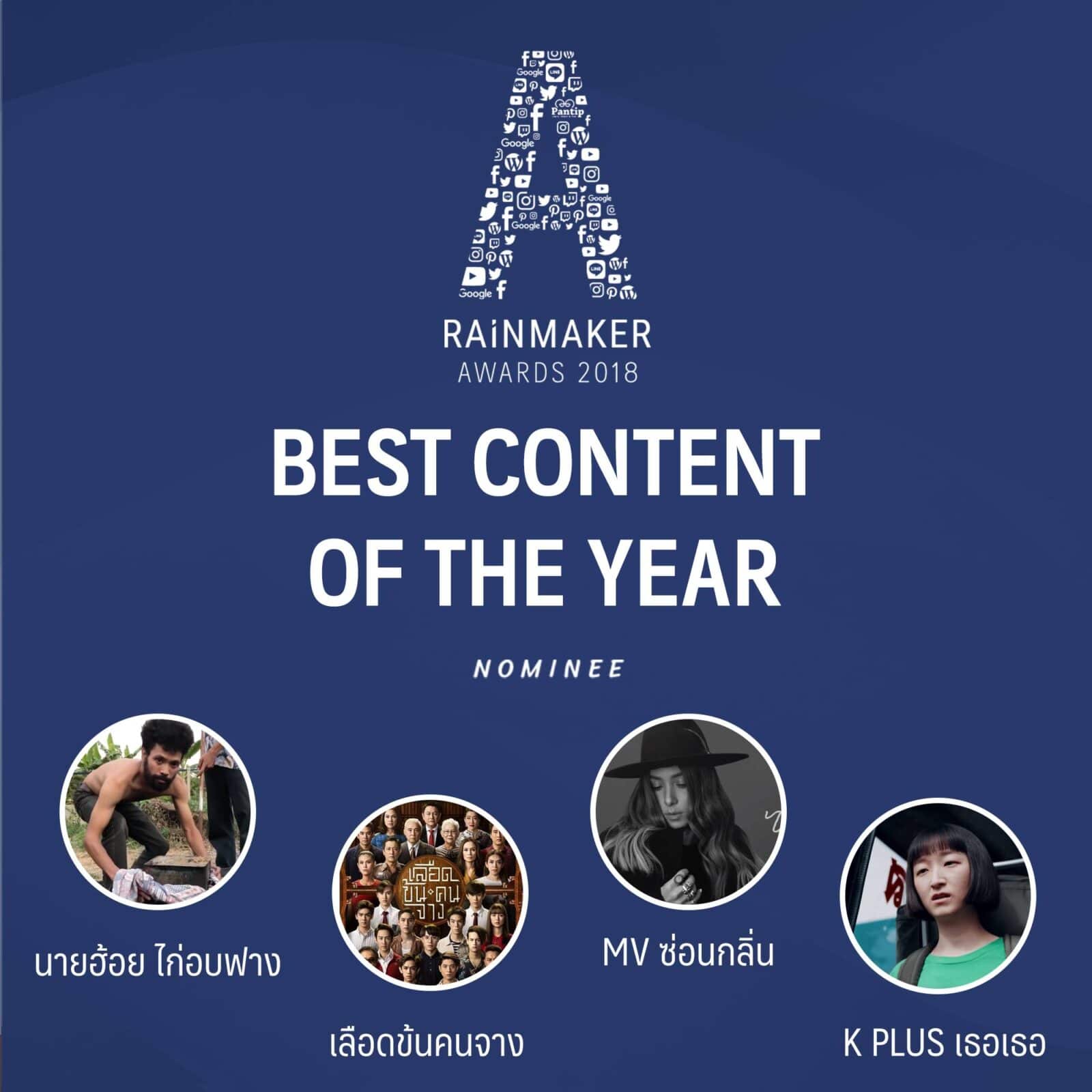 RAiNMaker Awards 2018 กิจกรรมมอบรางวัลออนไลน์ให้แก่ Publisher ที่มาแรง น่าสนใจ และผลิตคอนเทนต์คุณภาพออกมาสู่สาธารณะ ในปี 2018 โดยมีด้วยกันทั้งหมด 13 สาขา รางวัลเหล่านี้ทีมงาน RAiNMaker ตั้งใจมอบให้แก่คนทำงานวงการสื่อและคอนเทนต์โดยเฉพาะ ผลรางวัลจะมีใครได้ไปบ้าง เชิญชมได้เลย ณ บัดนี้ The Winner is ….