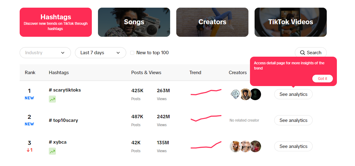 เพราะ TikTok เป็นพลตฟอร์มที่เทรนด์เปลี่ยนไปอยู่ทุกวัน TikTok Creative Center จึงมี “Trend Chart” มาให้ เพื่อให้ทั้งแบรนด์ และครีเอเตอร์ที่เป็น TikToker ตามเทรนด์ให้ทัน