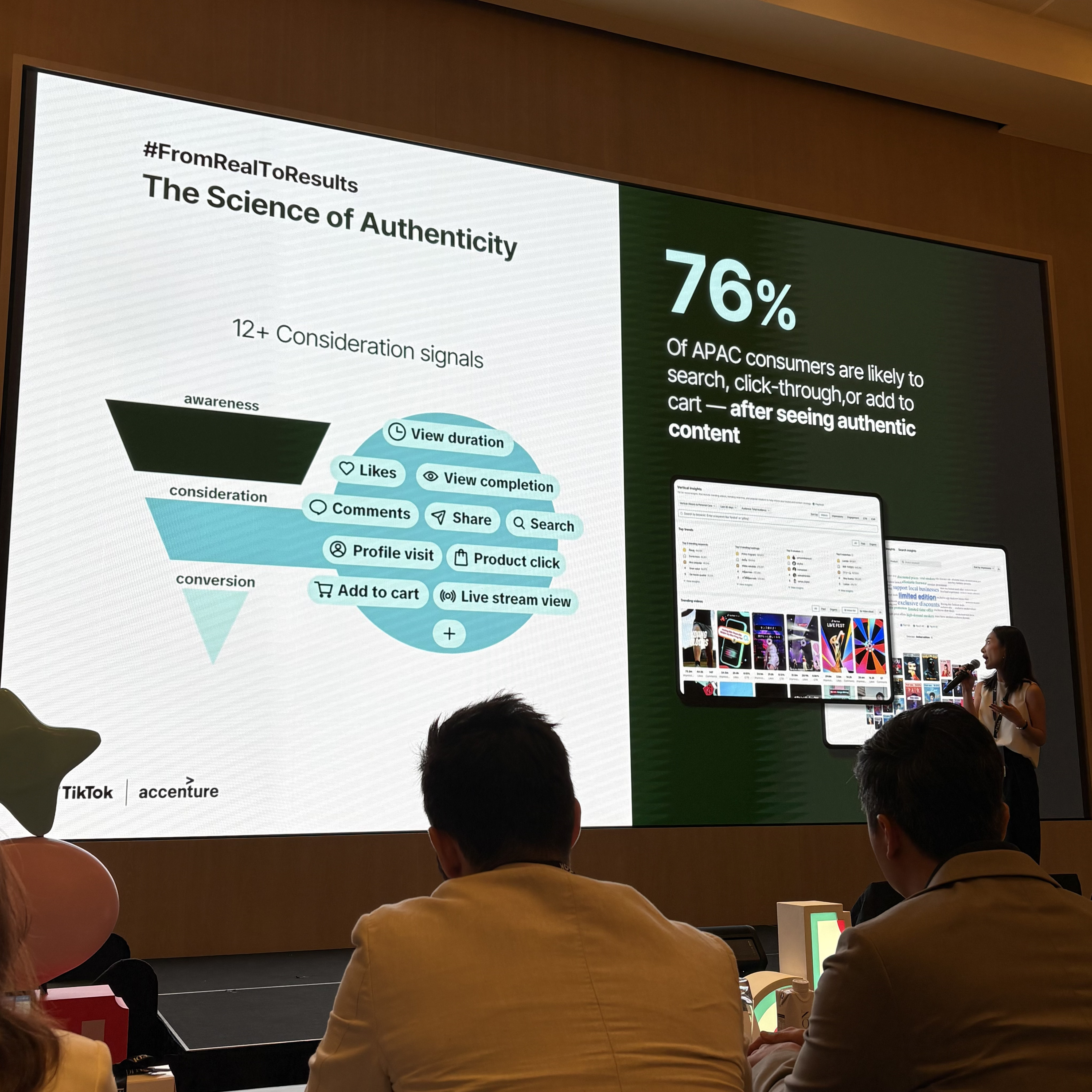 76% ของผู้บริโภคใน APAC ชอบที่จะเสิร์ช และคลิกเพื่อเข้าไปมีส่วนร่วมกับคนเทนต์ หรือหากเป็นการขายของก็ชอบที่จะ ‘Add to Cart’ เก็บเอาไว้โดยไม่ซื้อหลังจากได้รับชมคอนเทนต์ นี่จึงเป็นการรวม 10 สัญญาณที่นำไปสู่การพิจารณา (Consideration) ว่าแบรนด์นี้น่าสนใจจากคอนเทนต์ได้ดี