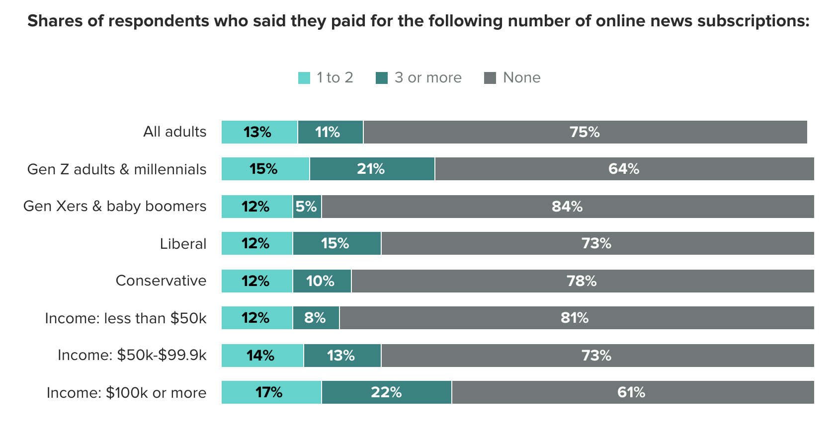 นอกเหนือจากนี้ การ Subscriptions ข่าวสารก็พบว่า กลุ่มคน Gen Z นั้นชอบที่จะติดตาม หรือซื้อสมัครสมาชิกกับเว็บข่าวสารออนไลน์ที่สามารถตามข่าว และพูดคุยในเวลาเดียวกันได้มากกว่าการรับข่าวสารเแบบ One-way Communication เพียงอย่างเดียวด้วย