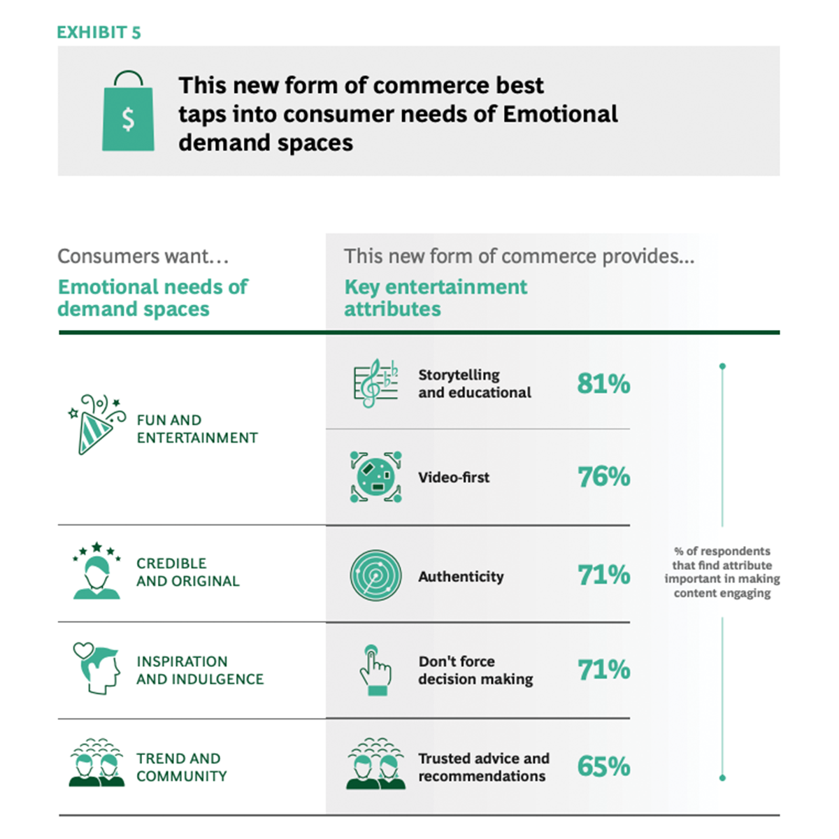 77% ของผู้บริโภคซื้อสินค้าจากคอนเทนต์ที่สร้างความสนุกสนานบันเทิง รวมถึง 2 ใน 3 ของผู้บริโภคที่ซื้อสินค้าครั้งแรก ตัดสินใจซื้อสินค้าจากความต้องการทางอารมณ์และจิตใจ (Emotional Demands)