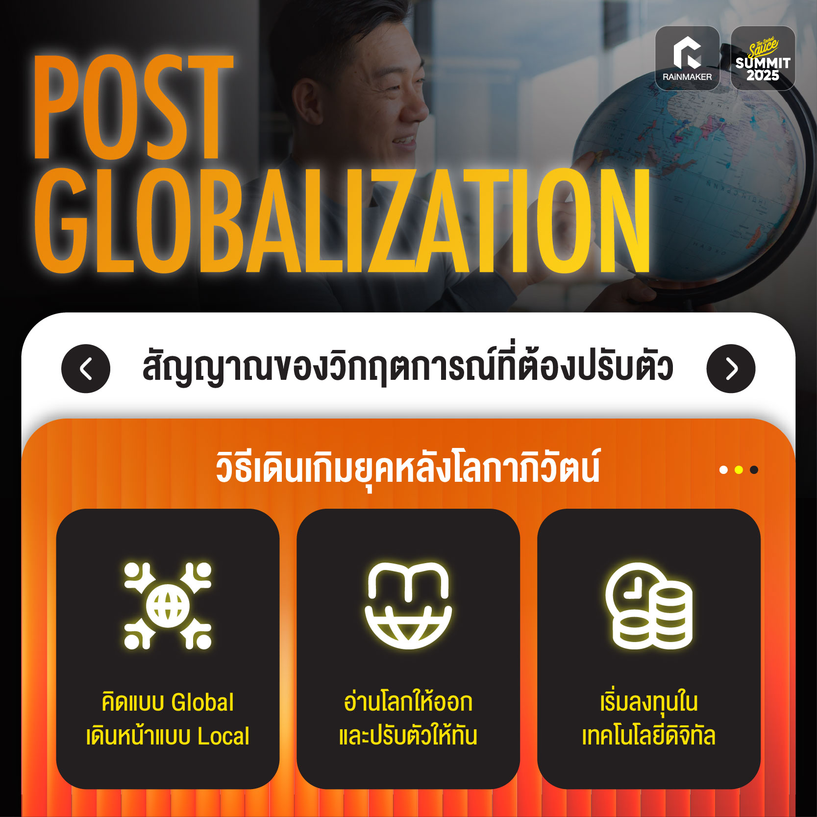 ทั้งเรื่องของ AI และเทคโนโลยี, ผู้สูงอายุและสุขภาพ, ตลาด Niche และ Mass ไปจนถึงการรับมือธุรกิจด้วยการสร้างความเชื่อใจท่ามกลางการหลั่งไหลของทุนจีน และความแปรผันของยุคหลังโลกาภิวัฒน์