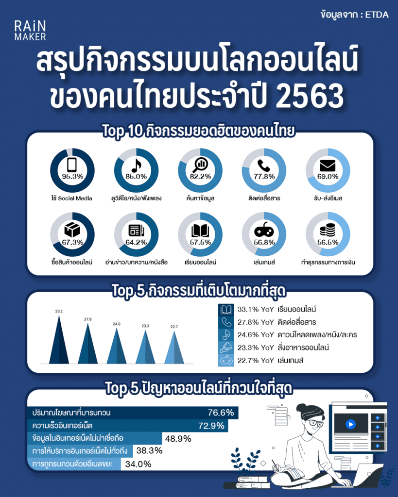 สรุปกิจกรรมบนโลกออนไลน์ของคนไทยประจำปี 2563