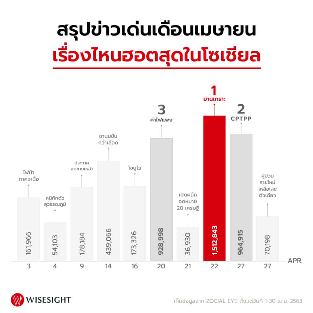 โดยข่าวที่มียอดเอ็นเกจเมนต์สูงสุดในเดือนเม.ย. 63 ได้แก่