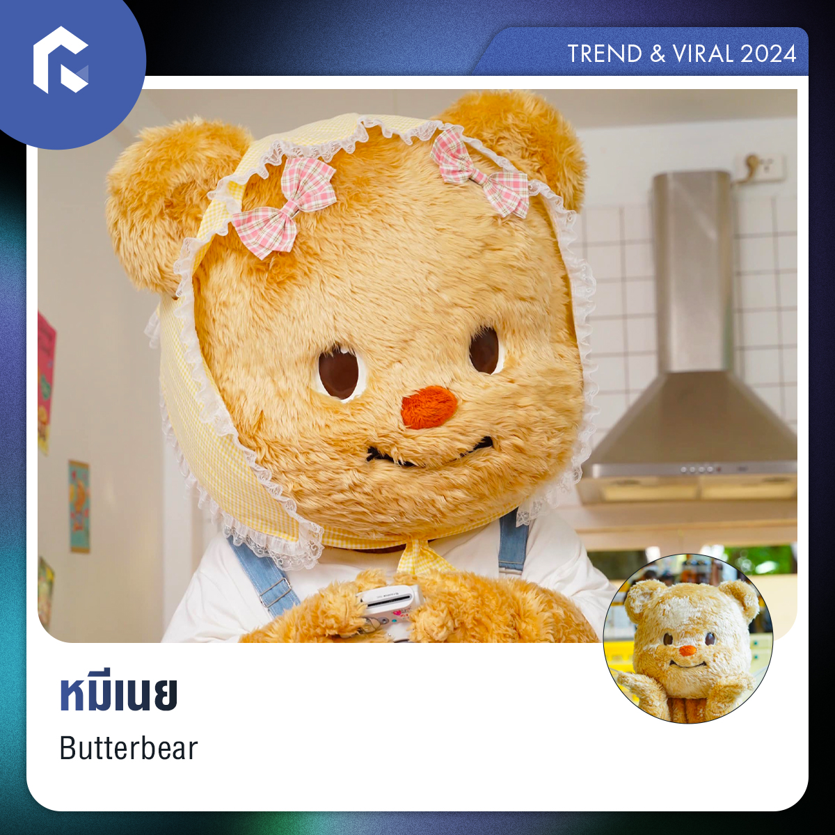 ช่วงครึ่งปีก่อนที่หมูเด้งจะถือกำเนิด ก็มี ‘น้องหมีเนย’ นี่แหละที่แจ้งเกิดมาก่อน หมีเนยเป็นมาสคอตประจำแบรนด์ Butterbear ที่ไวรัลจากคลิปเต้น Cover เพลง Magnetic ของไอดอลเกาหลีวง ILLIT ทำให้น้องหมีเนยสามารถตกเหล่ามัมหมีทั้งไทยและจีนเข้าด้อมได้อยู่หมัด ด้วยความน่ารักมากความสามารถ ทั้งร้อง เต้น และคีปคาแรกเตอร์ให้เหมือนมีชีวิตจริง จนทำให้หลายคนเชื่อว่าน้องคือหมีจริง ๆ ไม่ใช่มาสคอต