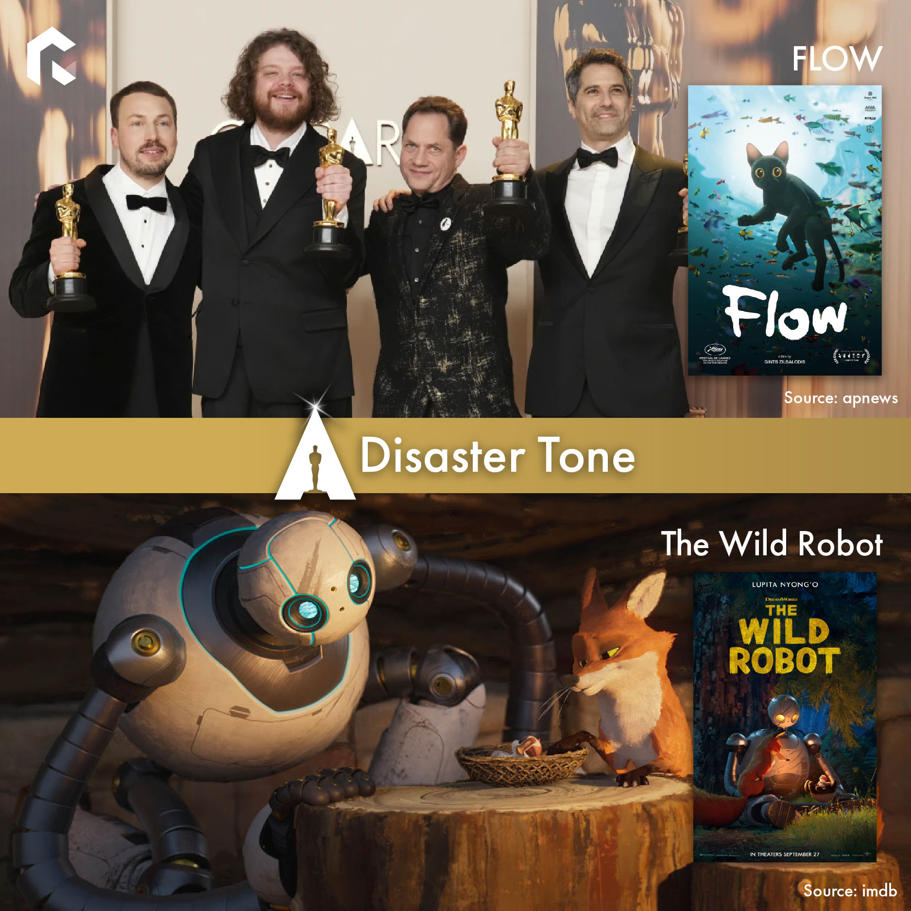 ซึ่งแม้จะไม่ได้เป็นแอนิเมชันจากค่ายใหญ่ที่มีชื่อคุ้นเคยสำหรับทุกคน แต่ FLOW ก็สามารถพิสูจน์ให้เห็นแล้วว่า แอนิเมชันจากผู้กำกับที่เรียนการทำกราฟิกจาก YouTube และสตอรี่ที่ชวนให้อินไปง่าย ๆ กับเหล่าสรรพสัตว์ที่มีเบื้องหลังการคิดมาดีแล้ว ว่าทำไมต้องเป็นการผจญภัยระหว่างแมวดำ คาปิบาร่า หมาลาบราดอร์ ริงเทลลีเมอร์ และนกประหลาดที่ไม่รู้สายพันธุ์